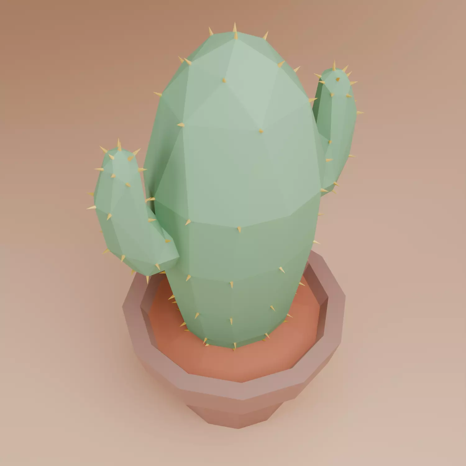 Features:-Low poly 3D model-Geometric cactus design with yellow spines-Brown pot with faceted design-Gradient background highlighting the details
