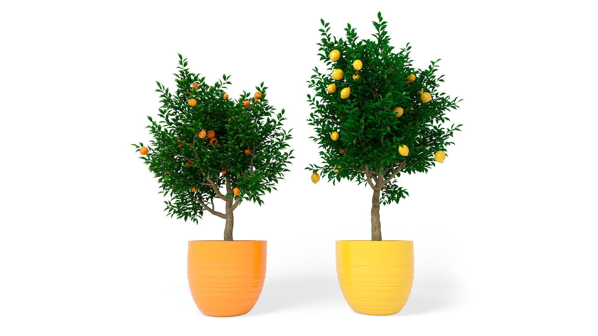 Citrus plants set.An excellent solution to complement the interior with rich colors.Orange objects in the interior immediately catch the eye. A great option when you want to highlight one or more objects in a roomYellow objects in the interior visually seem light, cheer up, visually expand the space. They make the room warmer and brighter.