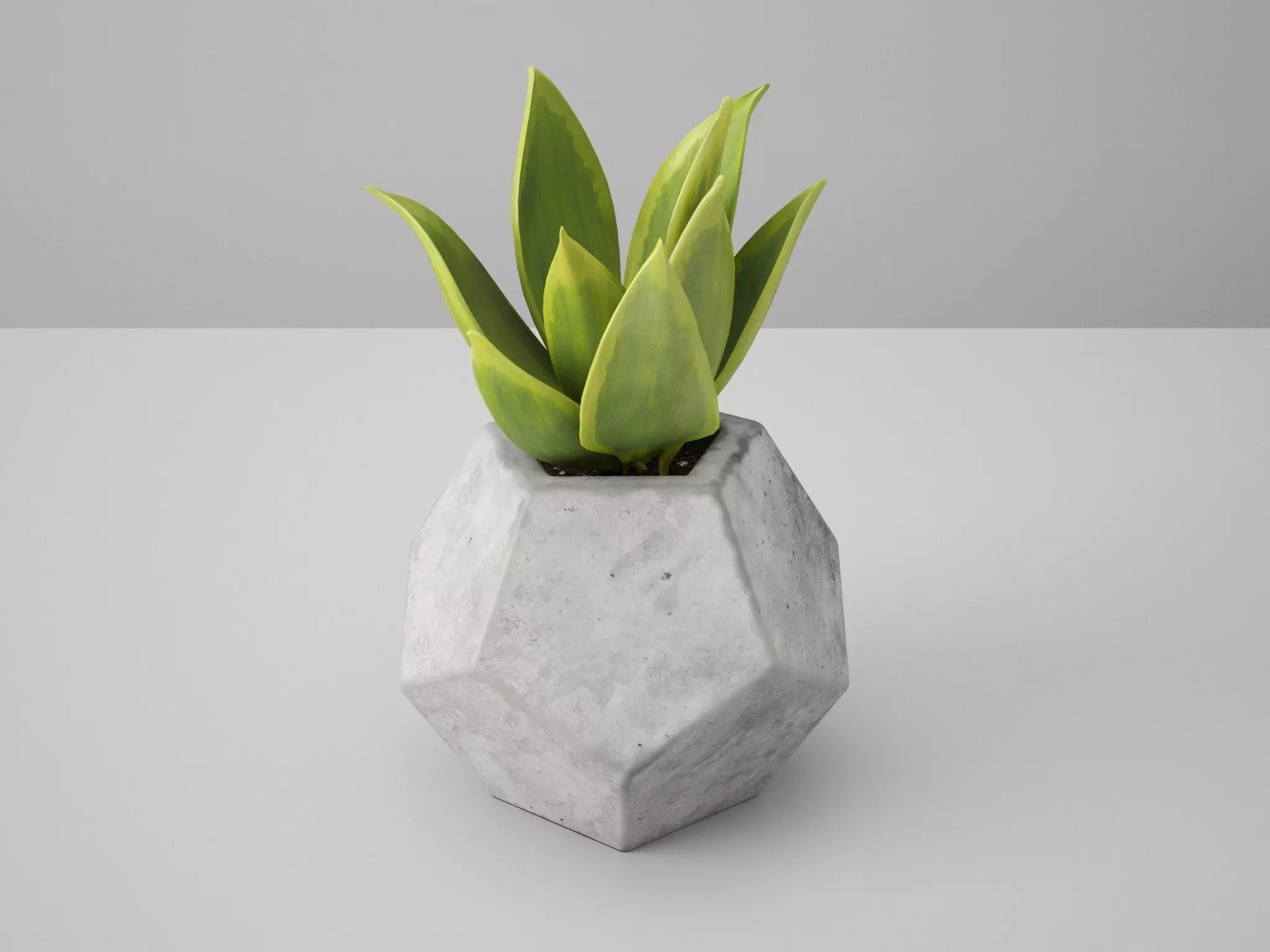 This is a realistic looking 3d model of a dodekaeder concrete potted cactus