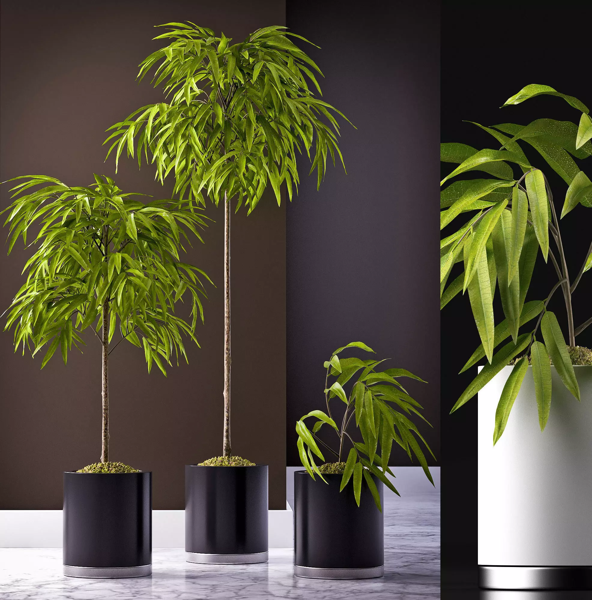 FICUS ALII PLANTS in 3 different size and arrangements in two different coloured pots suits best for any office are home interiors, designed in 3dsmax