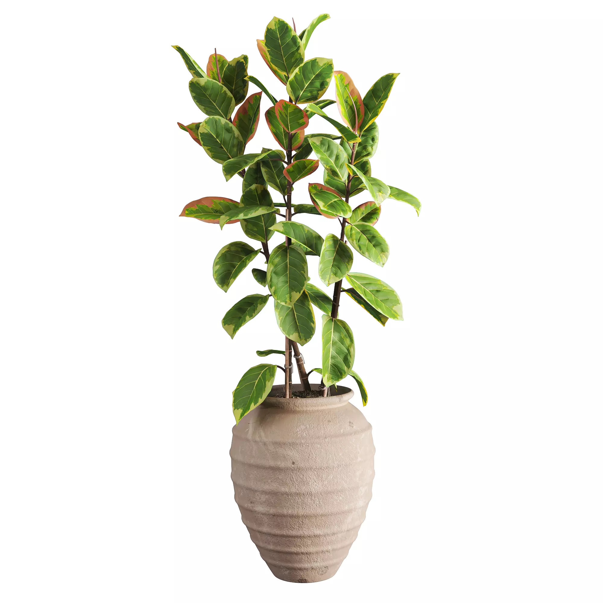 Enhance your interior visualizations with this highly detailed Ficus Elastica 'Ruby' 3D model. This asset features accurately textured variegated leaves with realistic shades of green, cream, and subtle pinkish-red hues typical of the Ruby variety.