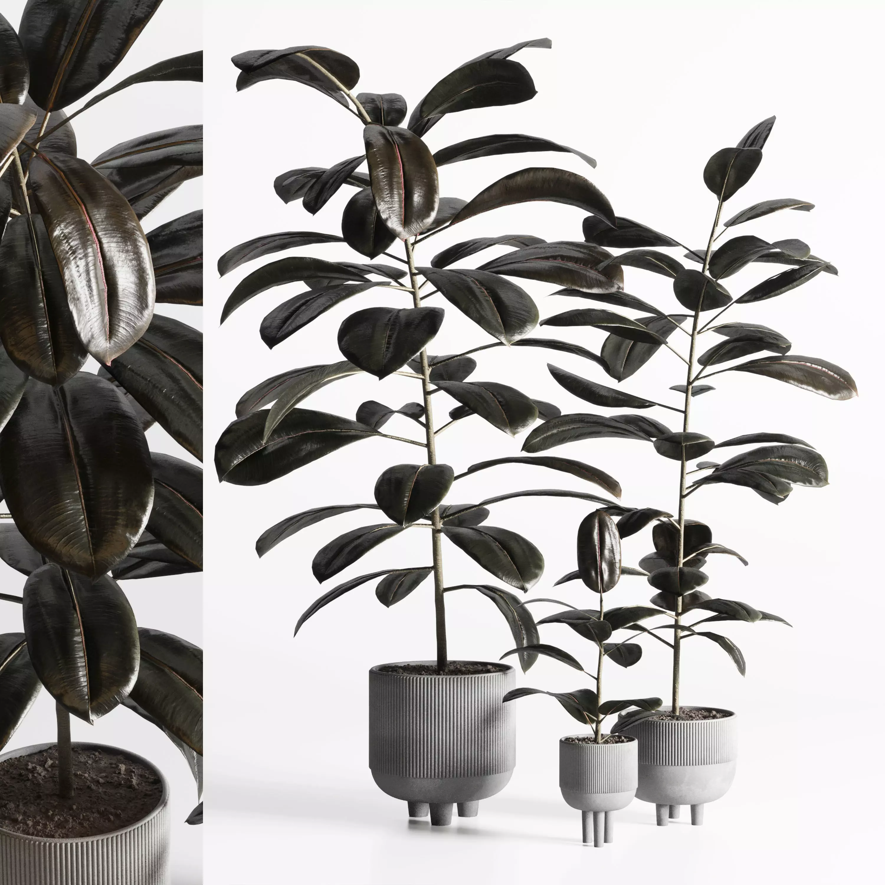 Ficus rubbery plant in concrete dirt vase - indoor plant 287File 3dmax 2015 corona_vrayexport file obj fbx