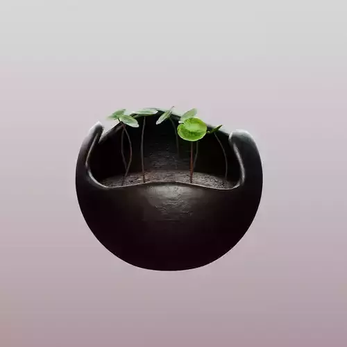 This is a high-quality, stylized 3D model of a modern black ceramic planter featuring delicate Pennywort-inspired sprouts emerging from textured soil.Designed with smooth organic shapes and a minimalist aesthetic, this asset is perfect for:Interior visualizationStylized or realistic environment designArchitectural renderingsDecor elements in games, animations, or product presentationsThe model includes carefully crafted materials, clean geometry, and detailed textures for a polished, professional look.