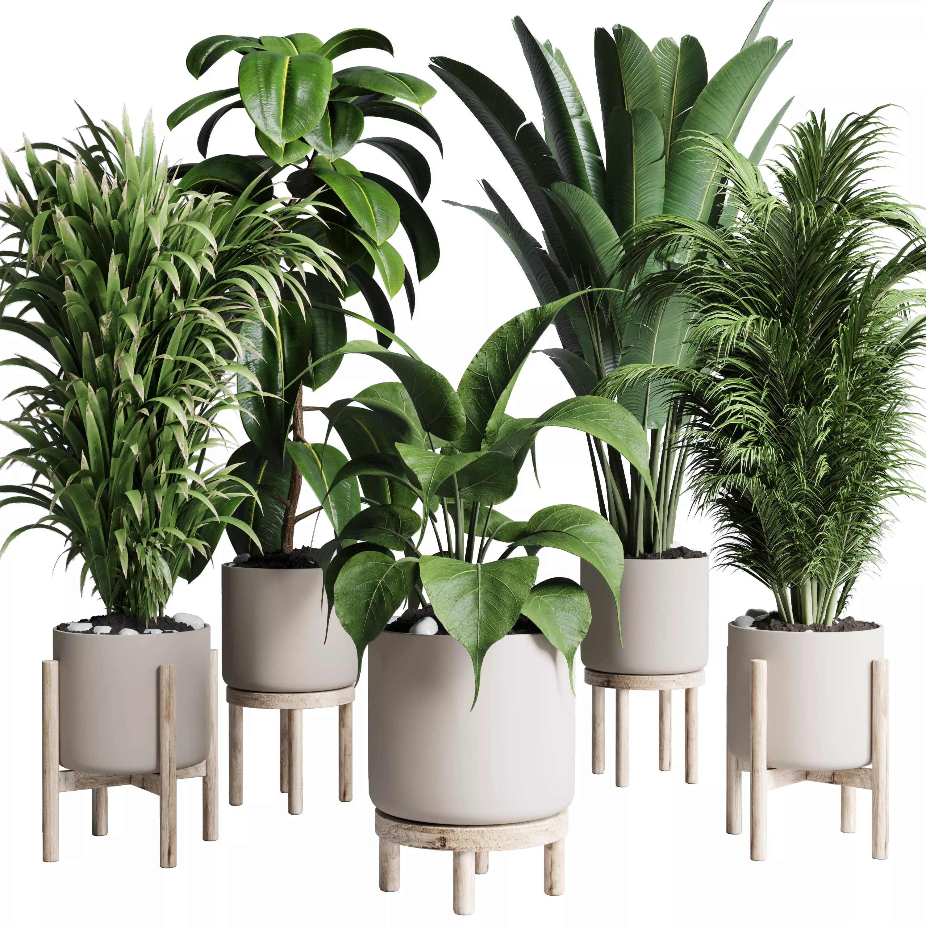 Collection indoor plant 191 pot plant ficus rubbery palm ravenala wooden vase
