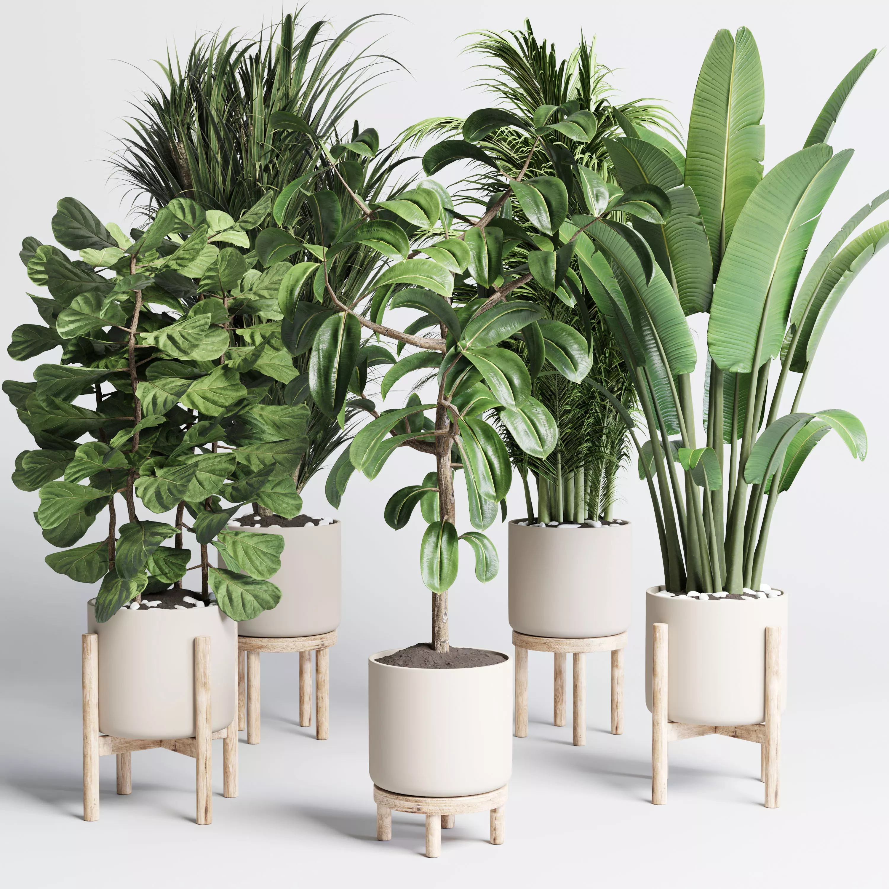 indoor plant palm ravenala ficus rubbery lyrata wooden vase 3D model