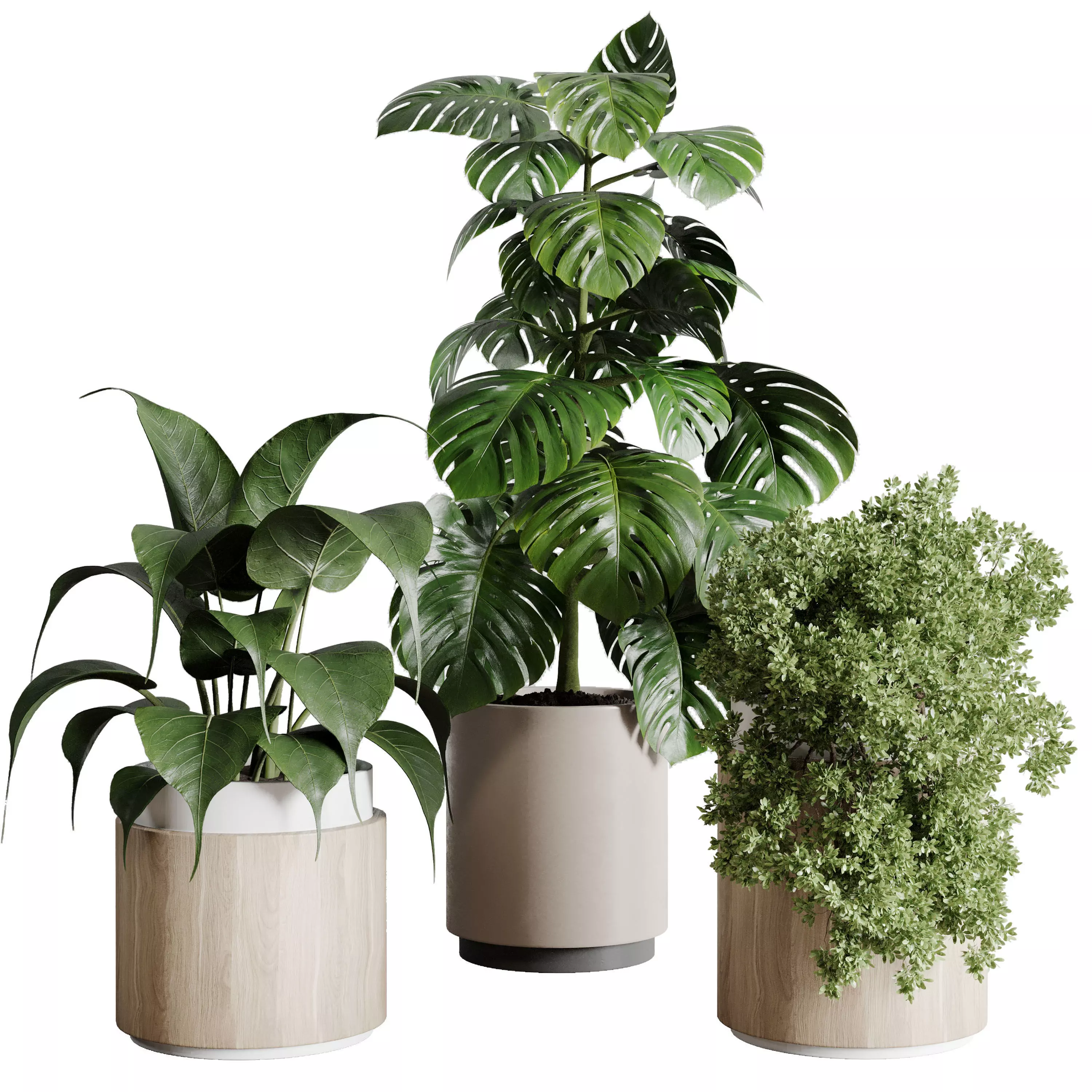 Collection indoor plant 198 plant bush monstera wooden dirt vase
