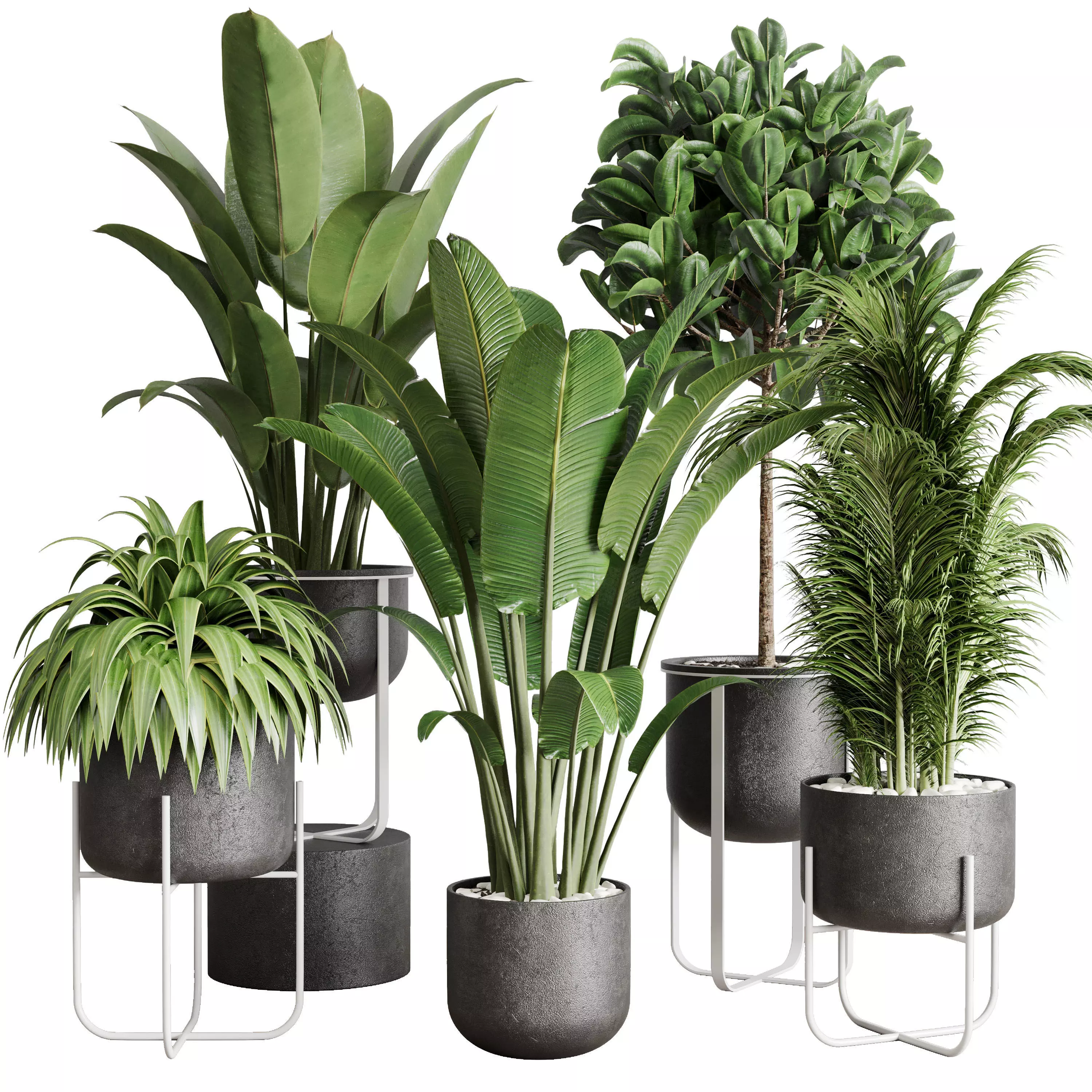 Collection indoor plant 142 plant ravenala ficus rubbery palm stand vase concrete