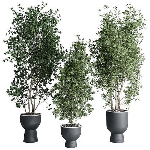 indoor plant set 380 tree bush concrete dirt vase Low-poly 3D model