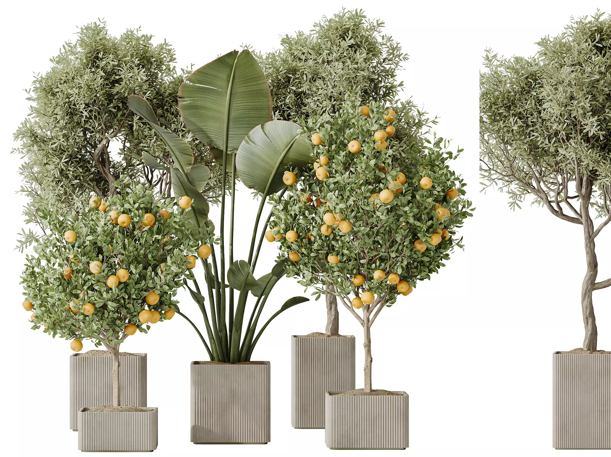 Indoor plants set 165 Olive and Fruit Orange and Banana 3D model