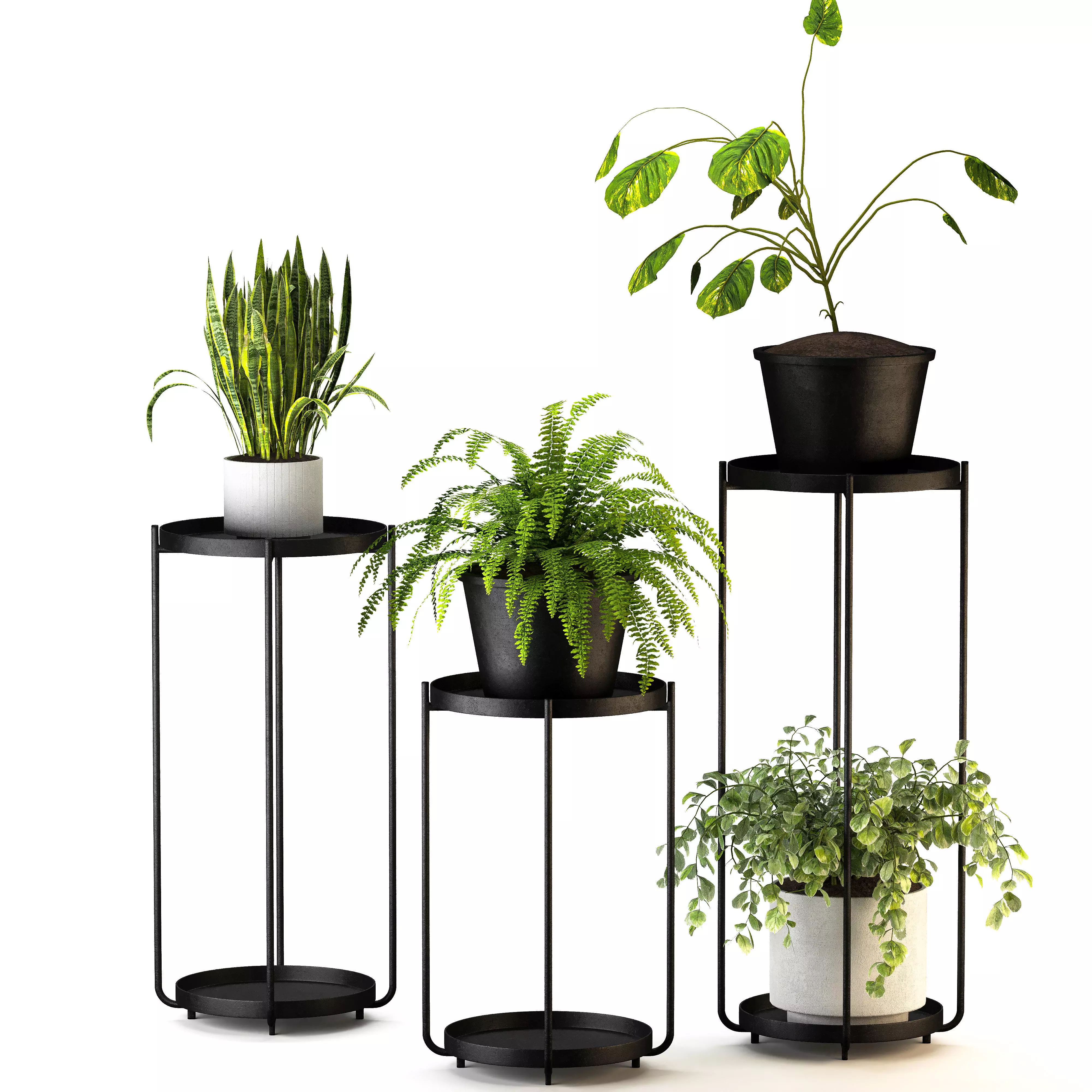 Metal Plant Set 13 is a modern indoor plant collection featuring decorative metal stands combined with a variety of realistic potted plants.The set includes different plant species and pot designs, arranged on minimalist metal frames with varying heights, making it suitable for contemporary interiors.