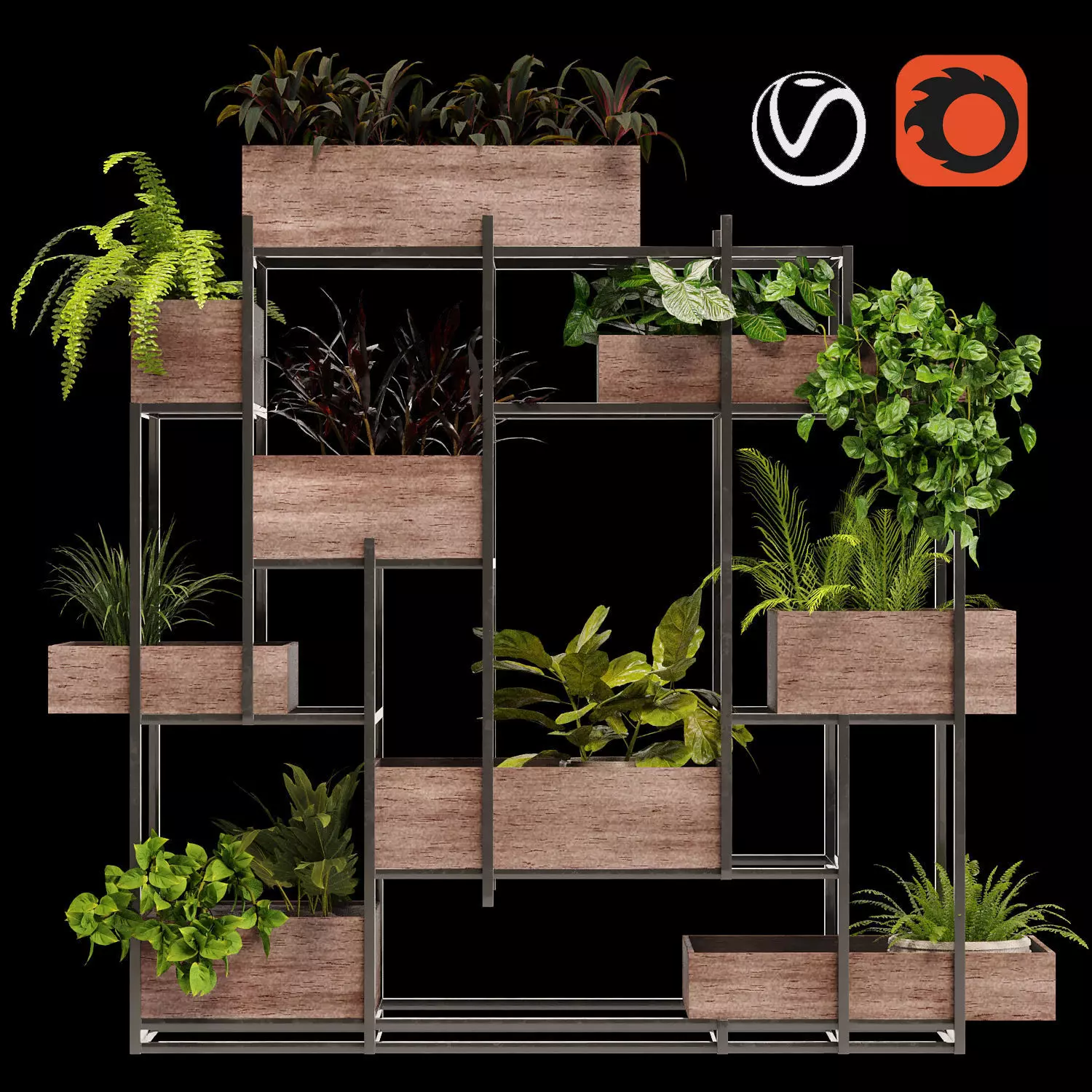 Metal Stand For Plants With Wood BoxesFerns,Money,Xanadu,Arrowhaed,Fiddle,Cordlyne PlantPolys:161685Verts:155038Fbx And ObjMax Version IS 2015