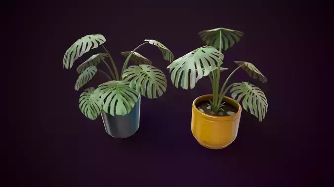 This model features a detailed Monstera Deliciosa with characteristic perforated leaves.
