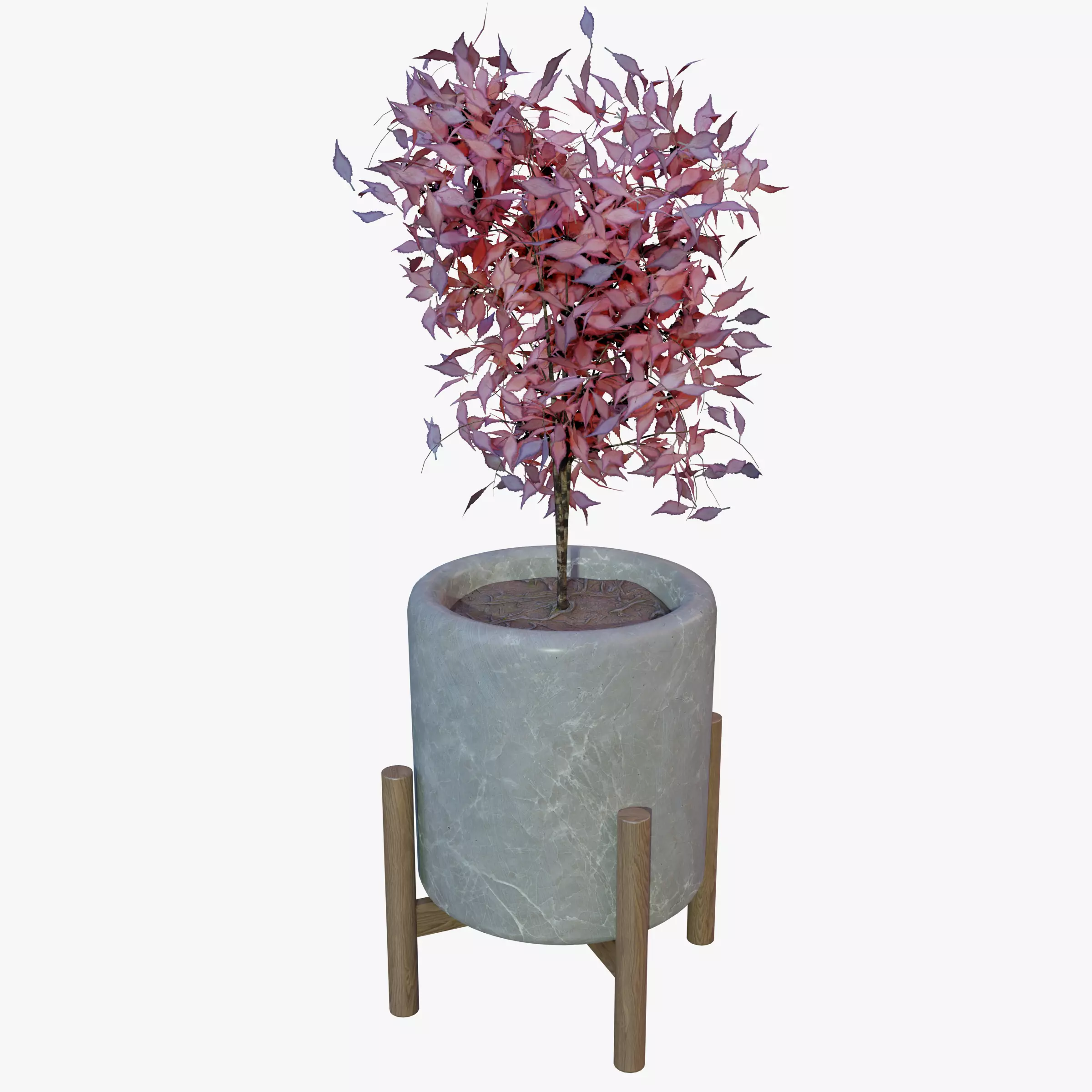 This is a model of an office plant that can be used for mid and long distance rendersThe leaves compose the same object, with overlaping UVs to make possible the texturing. All the other ojects have non-overlaping UVs.It has a base topology of ~13200 verticesIt has 5 PBR materials, using game-ready textures:1.Bark -4k- Albedo, Ambient Occlusion, Displacement, Gloss, Reflection, Normal Map;2.Ceramic -4k- Albedo, Reflection, Roughness, Normal Map;3.Earth -4k- Albedo, Ambient Occlusion, Displacement, Gloss, Reflection, Normal Map;4.Wood -4k- Albedo, Reflection, Gloss, Normal Map;5.Leaves -2k- Albedo, Reflection, Gloss, Normal Map.The plant may contain 'floating' leaves that are not attached by any branch for vertices optimization. This is the reason I recomment it mainly for mid and long distance renders, not for close-upIt has a height of 30 cm / 11.8 inches and the blend file uses the metric system