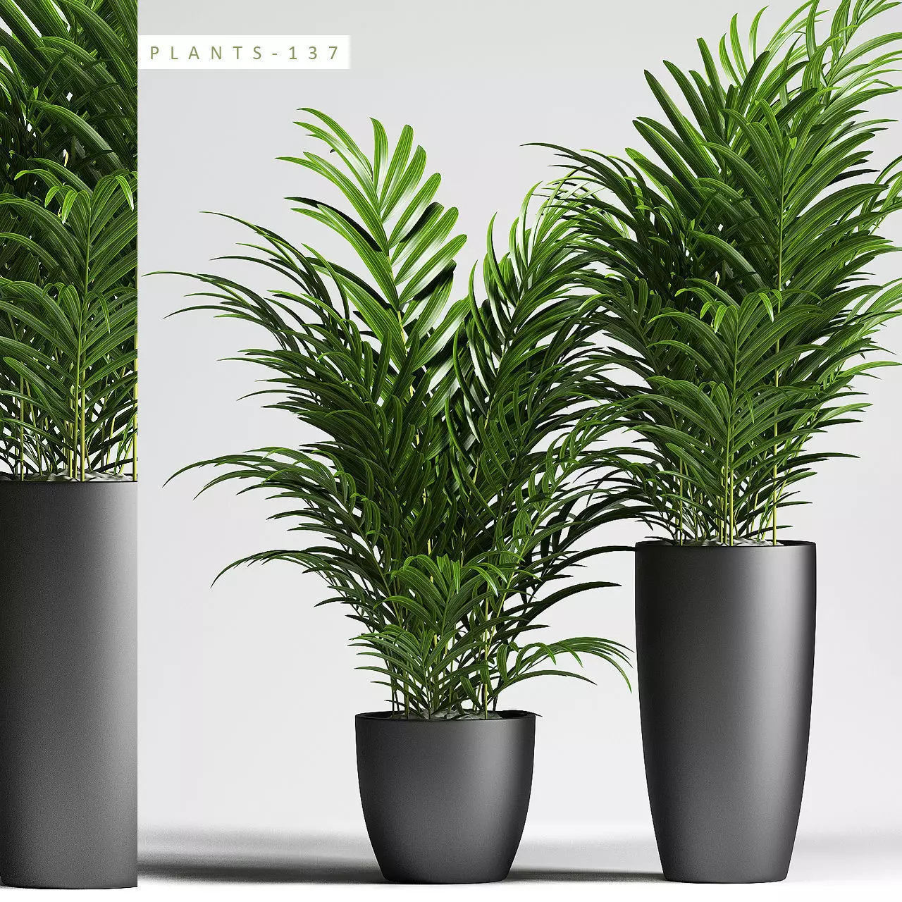 plants 137 contains a set of palm plants in two different sizes of different types of pots, suits best for any interiors, designed completely in 3dsmax no plugins used