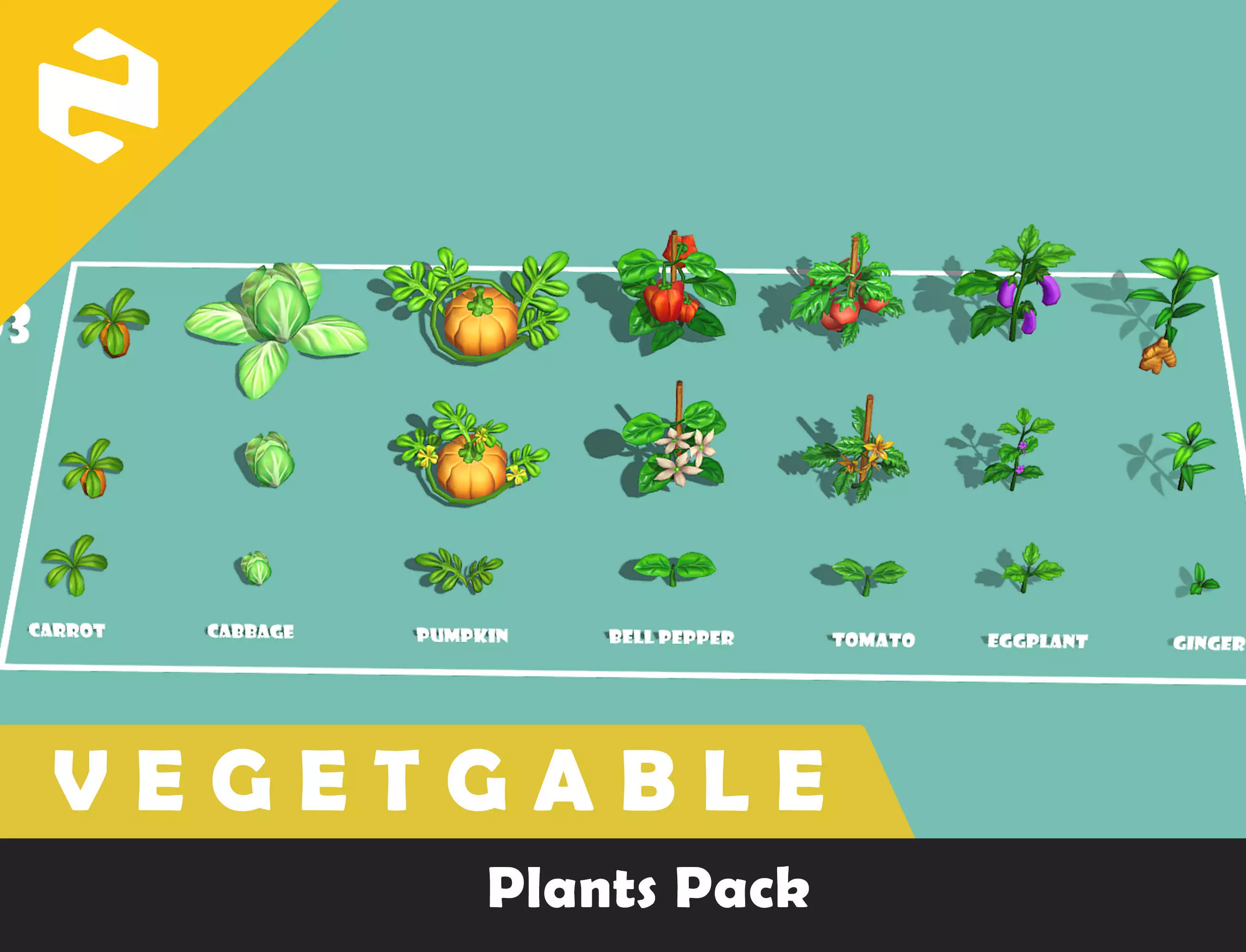 • The collection includes 7 types of vegetables with 3 levels each including: Carrot, Cabbage, Pumpkin, Bell Pepper, Tomato, Eggplant, Ginger ( FBX format )