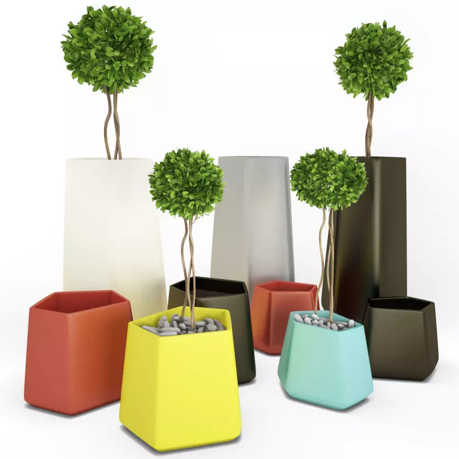 3d colored plastic plant pots with scrubs.