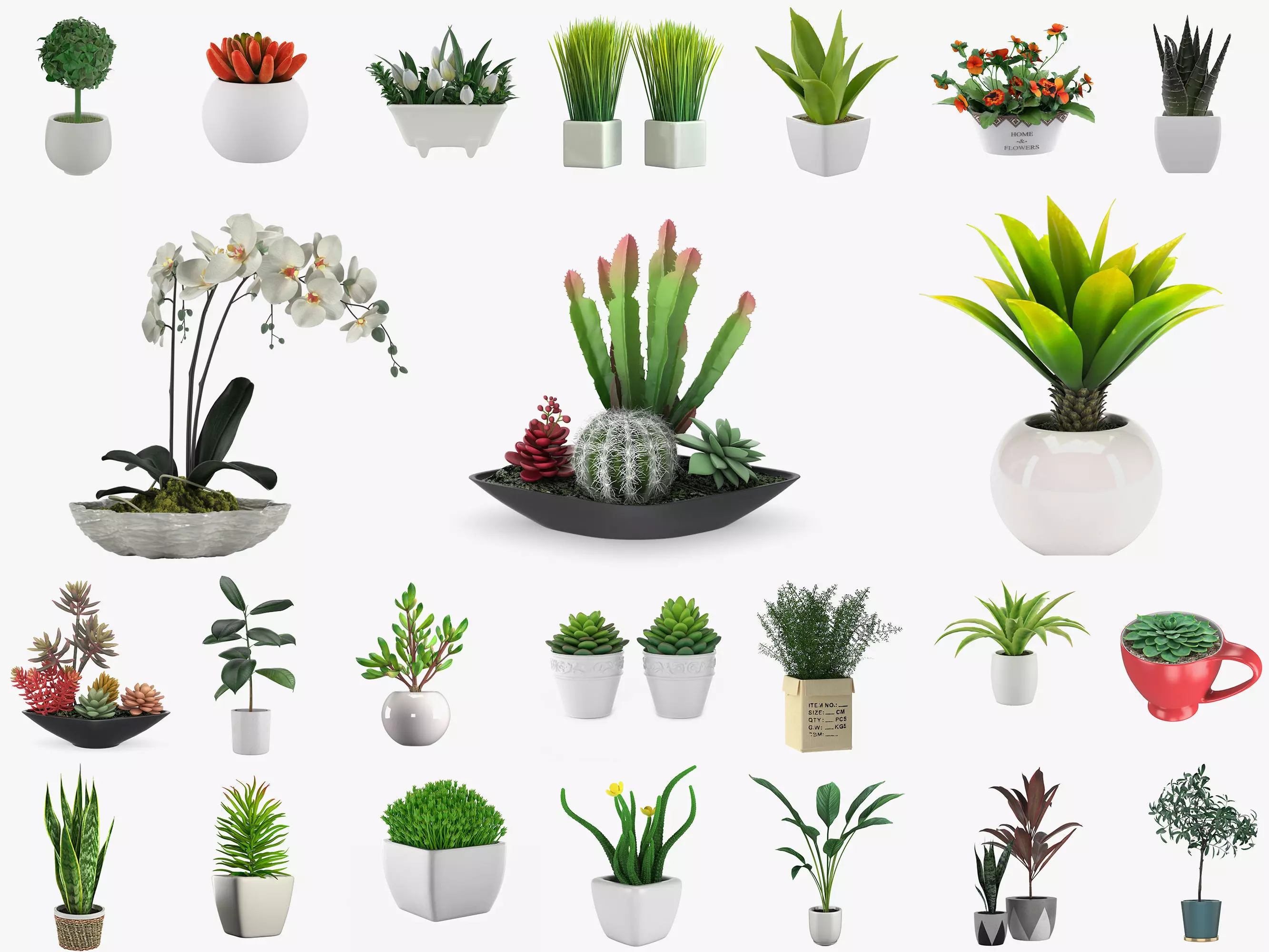 Pot Plant 24 3D modelsUnits: MillimetersCreated in 3ds max 2016, saved to 3ds max 2013Other formats: OBJ; FBX in .max archive (converted from V-ray)No third party plugin required.Previews rendered with Vray.
