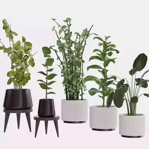 3D models of plants with pots that can be used for interior and exterior a package of several 3D models of various plants and pots designed for use in 3D projects. The models are provided in OBJ, FBX, and 3DS formats and can be used in software such as Maya, 3ds Max, Blender, and other similar applications. The package includes several 3D models of different pots with various plants such as grass, lilac, yucca, and more. All models are designed with high details and can be used for interior simulations, architectural renderings, and other 3D projects.