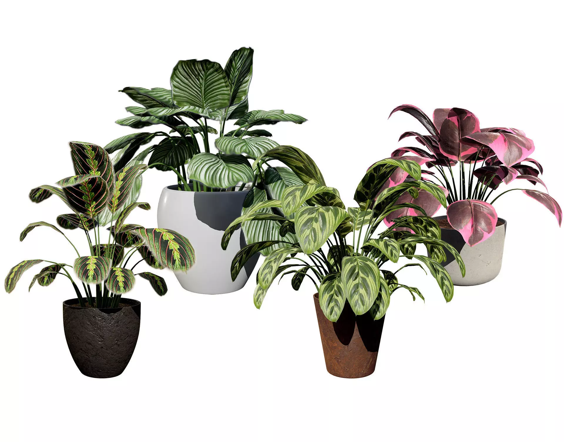 This detailed 3D model features a realistic depiction of a prayer plant, showcasing its unique foliage with striking patterns and textures. The model is perfect for adding a touch of nature to your interior design projects, architectural visualizations, or botanical illustrations.