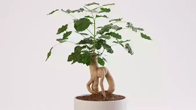 Hi-res 3D model of a radermachera potted plant. Preview images rendered with V-Ray.