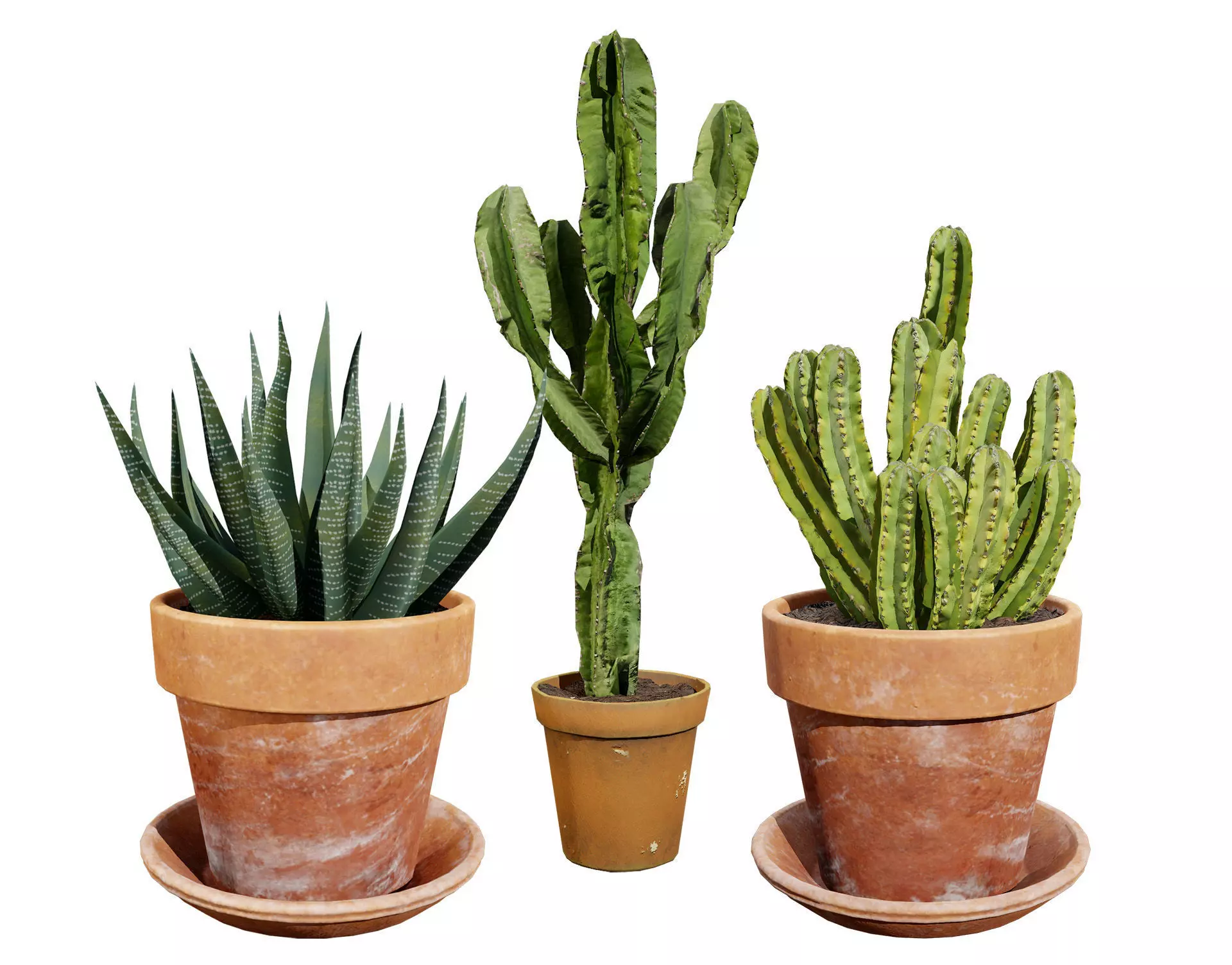 Enhance your interior design projects with this realistic 3D model of a captivating indoor cactus collection. Featuring three distinct cacti varieties in terracotta pots, this model adds a touch of natural beauty and low-maintenance greenery to any virtual space.