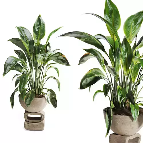 Spathiphyllum Plant in Stone Pot 3D model
