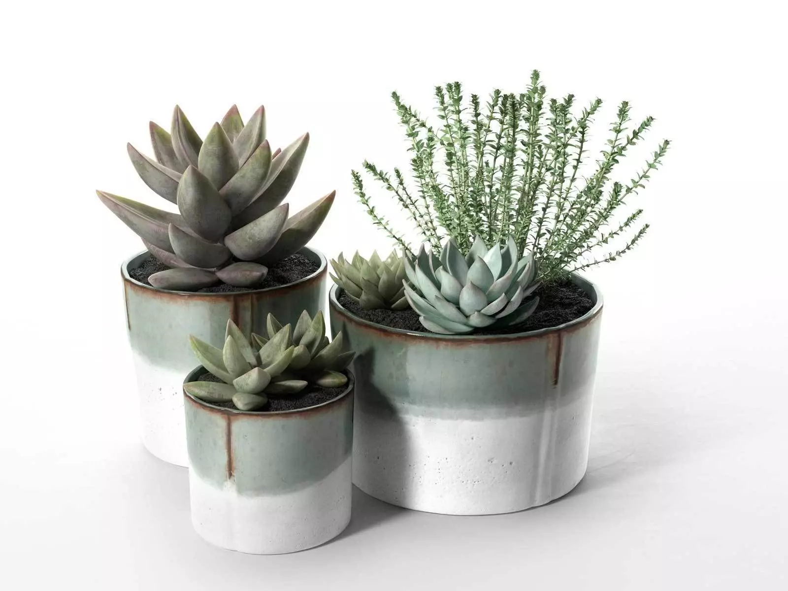 This 3d model Succulent Pot Set with Echeveria and Rosemary Plants has a fully textured, detailed design that allows for close-up renders. Every model has been checked with the appropriate software.
