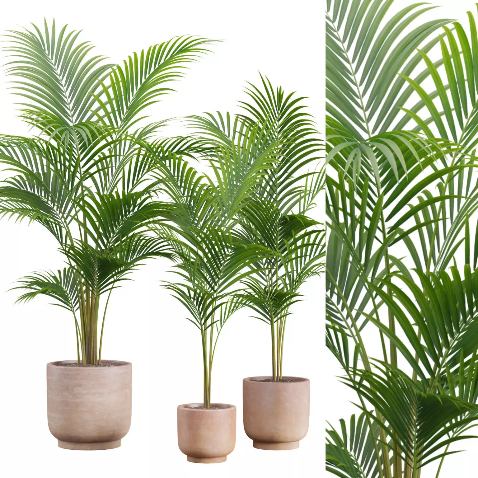 Dypsis lutescens, also known as golden cane palm, areca palm, yellow palm, butterfly palm, or bamboo palm, is a species of flowering plant in the family Arecaceae, native to Madagascar and naturalized in the Andaman Islands, Réunion, El Salvador, Cuba, Puerto Rico, the Canary Islands, southern Florida, Haiti, the Dominican Republic, Jamaica, the Leeward Islands and the Leeward Antilles. Theses potted houseplants will bring tropical fair to your indoor renders.