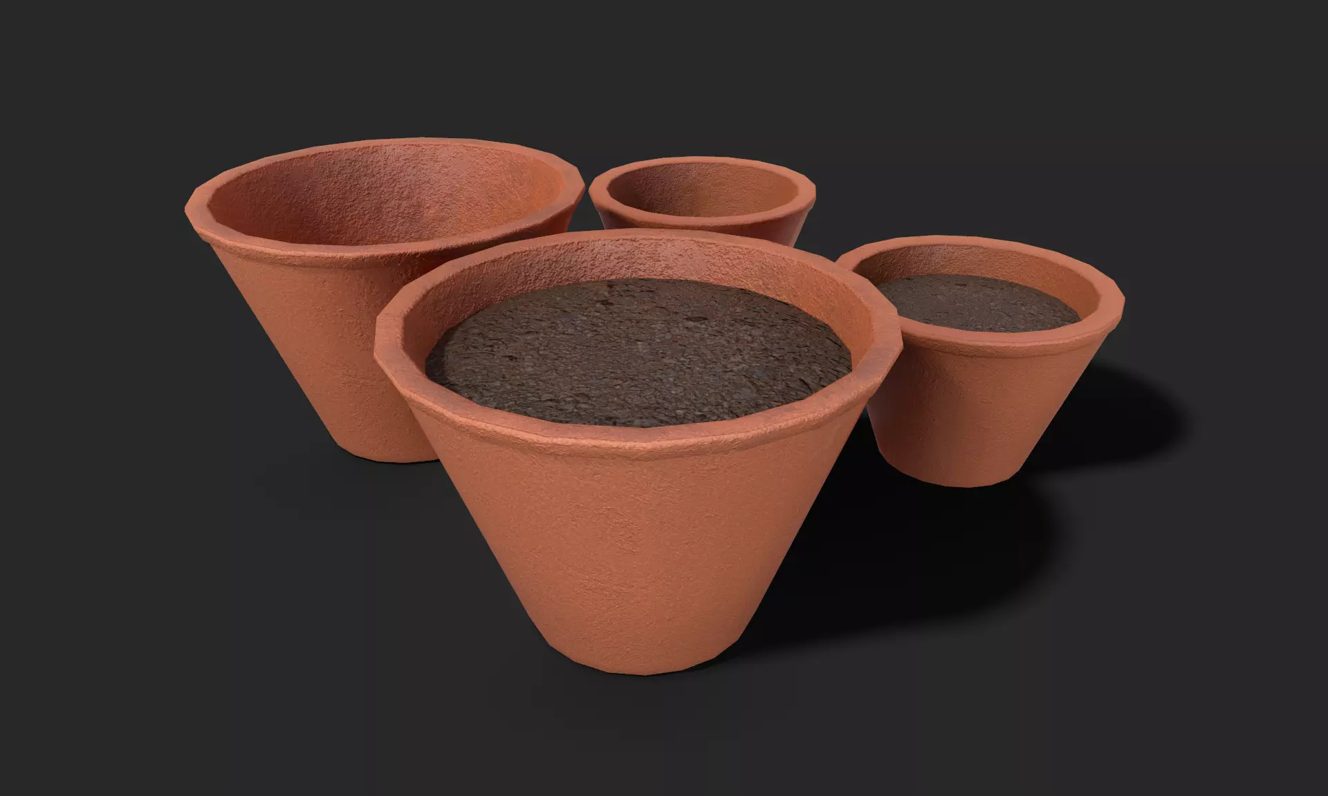 Real time, Game ready, Terracotta Plant Pot for exterior or interior use, it features two sizes, which feature empty and filled versions.