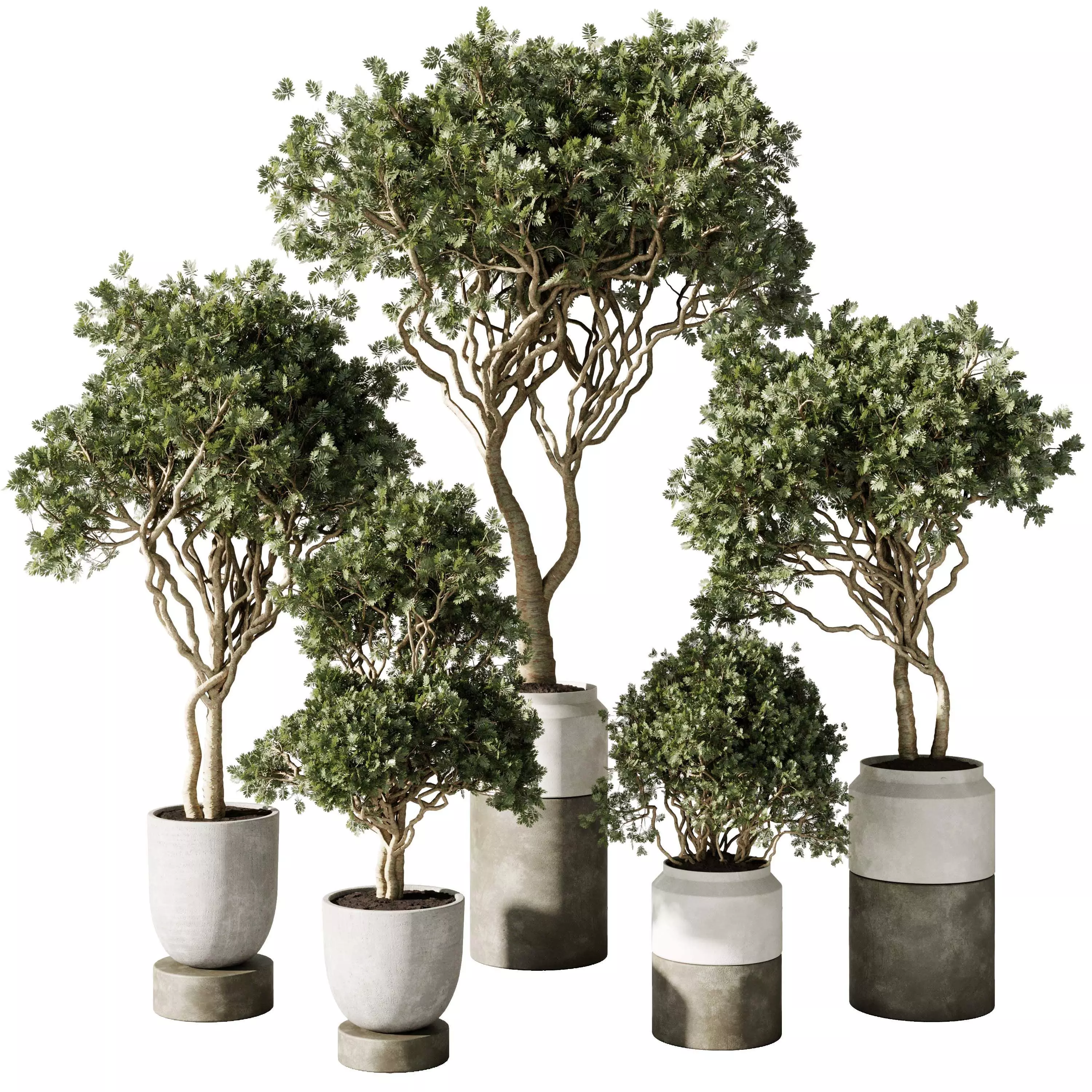 Tree bush in a concrete pot - indoor plant 567 3D model