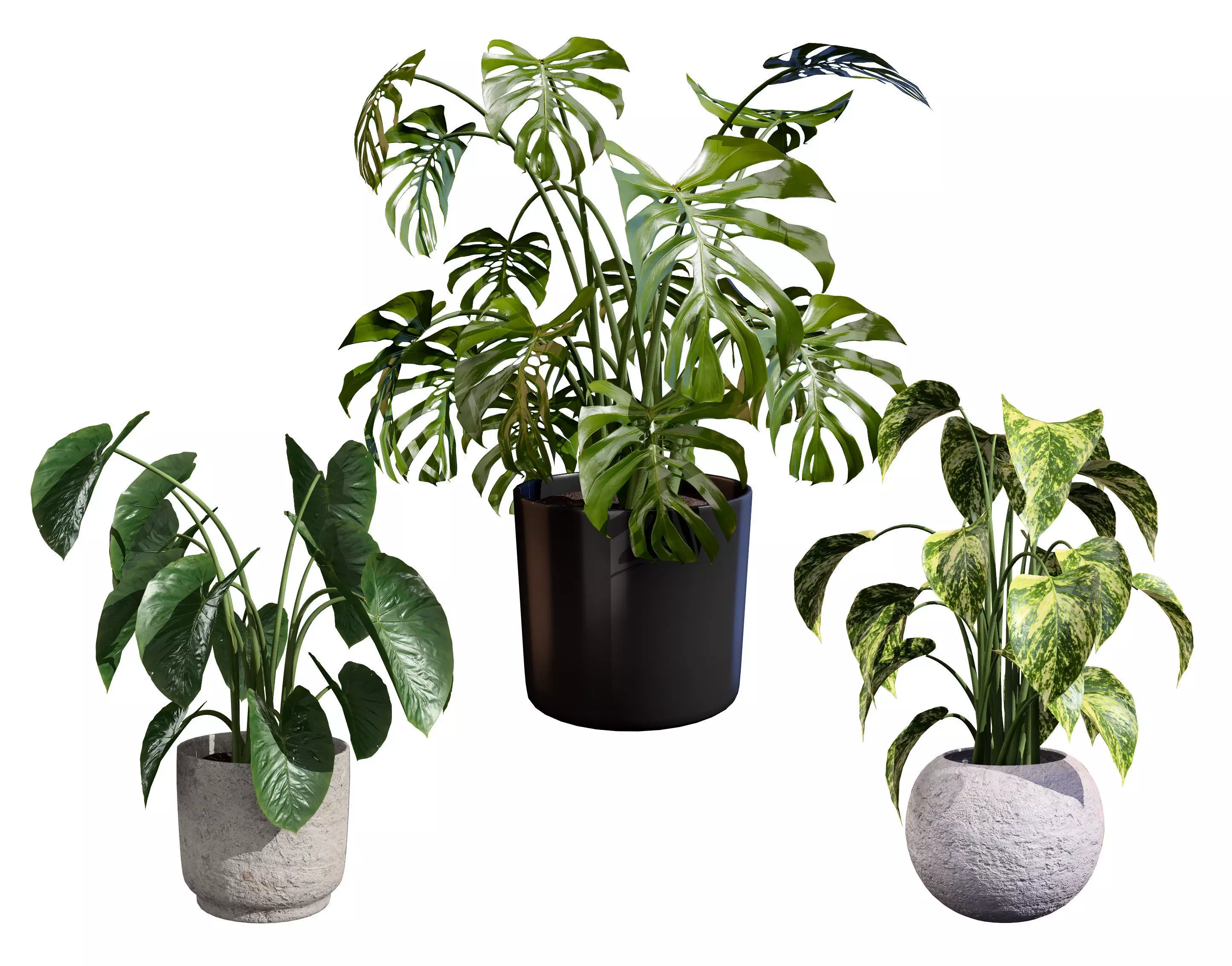 Enhance your home interior décor with these stunning 3D model tropical pot plants,the model contains 3d model of Swiss Cheese Plant, Green tropical Aglaonema and Dumb Cane 3d pot plant, The model's realistic textures and details, such as the slightly glossy finish of the leaves and the delicate veins, make it a stunning addition to any home or office. You can use this model to add a splash of color and a touch of nature to your décor and to create a focal point in any room.