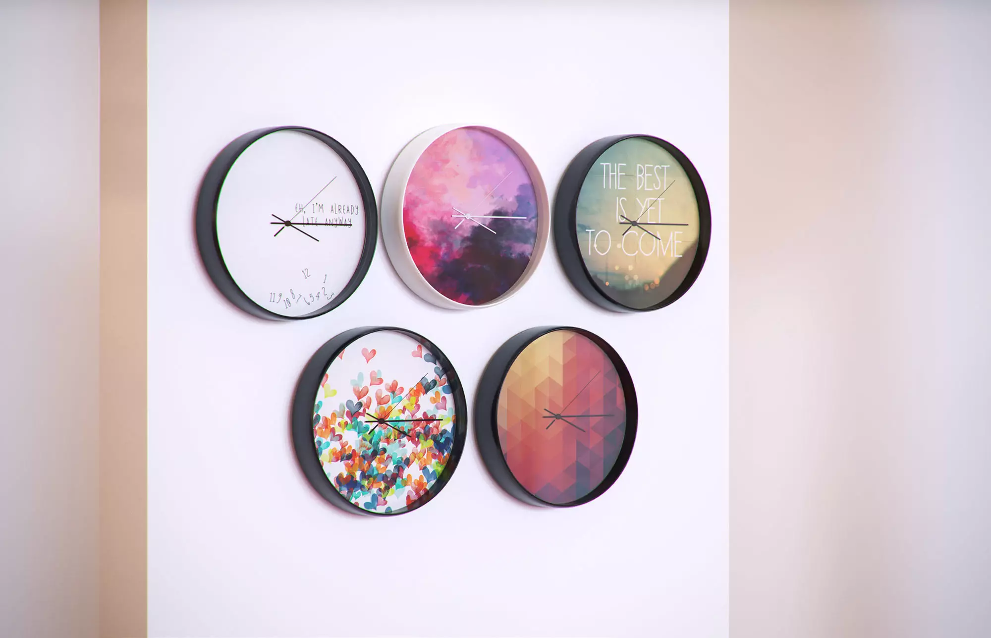 This set of 3D models includes the five round clocks with hands. Model prepared for 3d architectural visualisations and other graphic works.