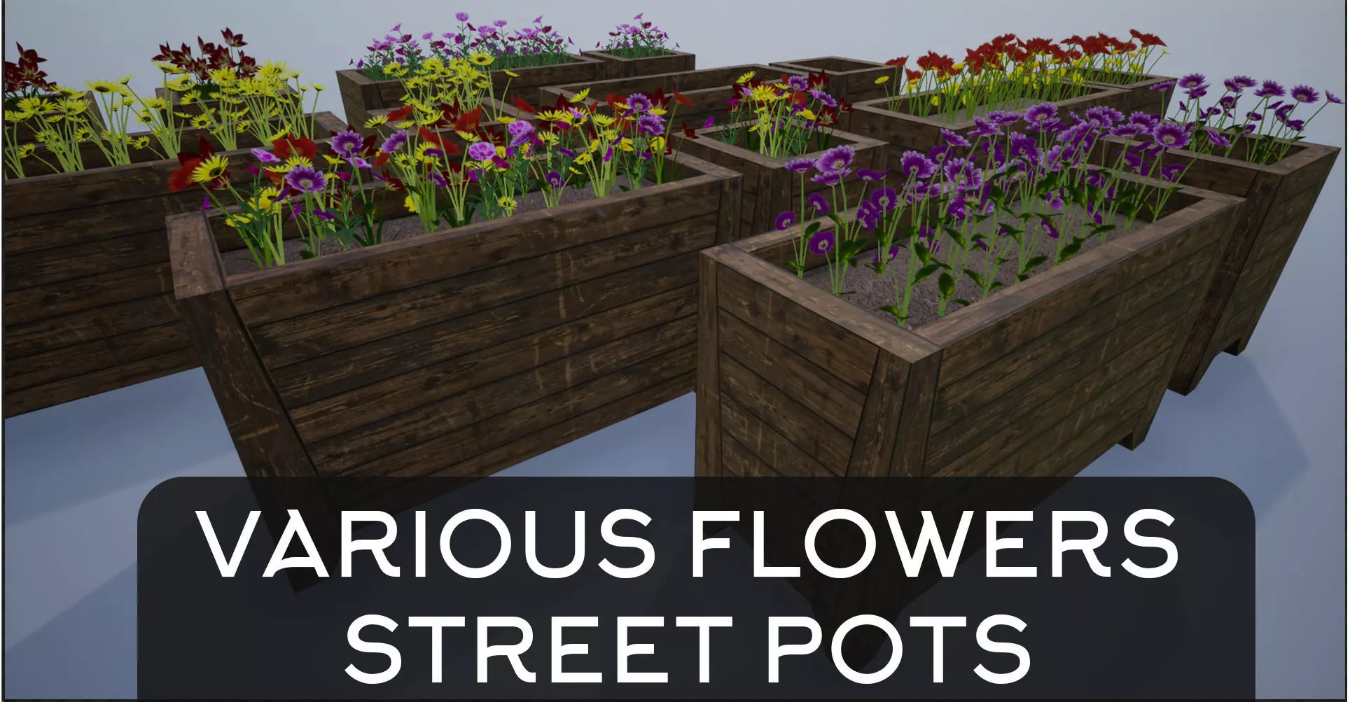 Wooden Big Street Flower Pots Low-poly 3D model