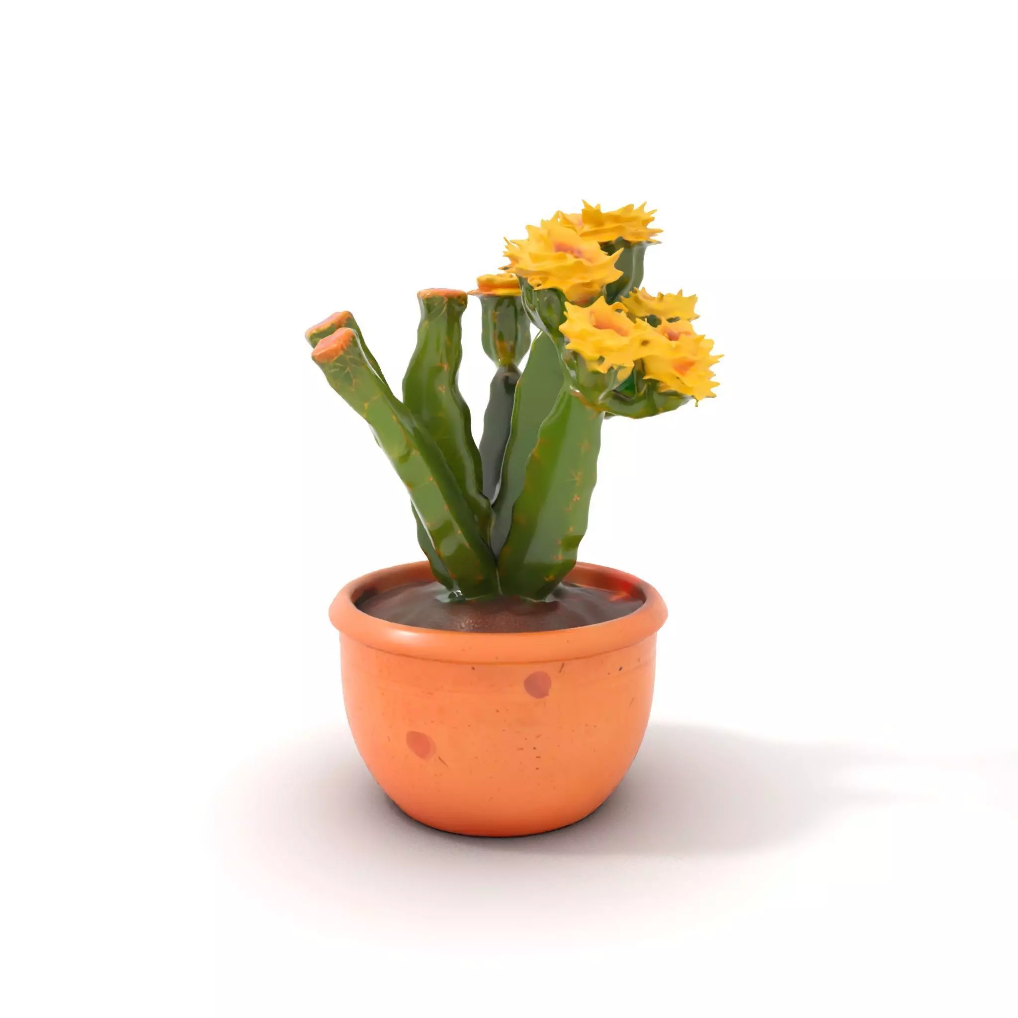 This vibrant Yellow Blooming Cactus model pack features a detailed representation of a cactus with bright yellow flowers, set in a textured terracotta pot. The model offers superb realism with its intricate textures and natural coloring, making it ideal for desert scenes, botanical gardens, or interior design visualizations. Each model includes three levels of detail: low-poly (1000 triangles for mobile), middle-poly (10,000 triangles for environment), and high-poly (100,000 triangles), allowing for versatile use in production rendering, game engines, and interactive presentations. The model's textures are PBR, with Diffuse, NormalMap, and reflection/roughness/metallic maps compatible with all modern rendering engines. All models are accurately unwrapped with no overlapping UVs, and all textures are 4096*4096 in size. If you enjoy this model, please like and leave a comment.