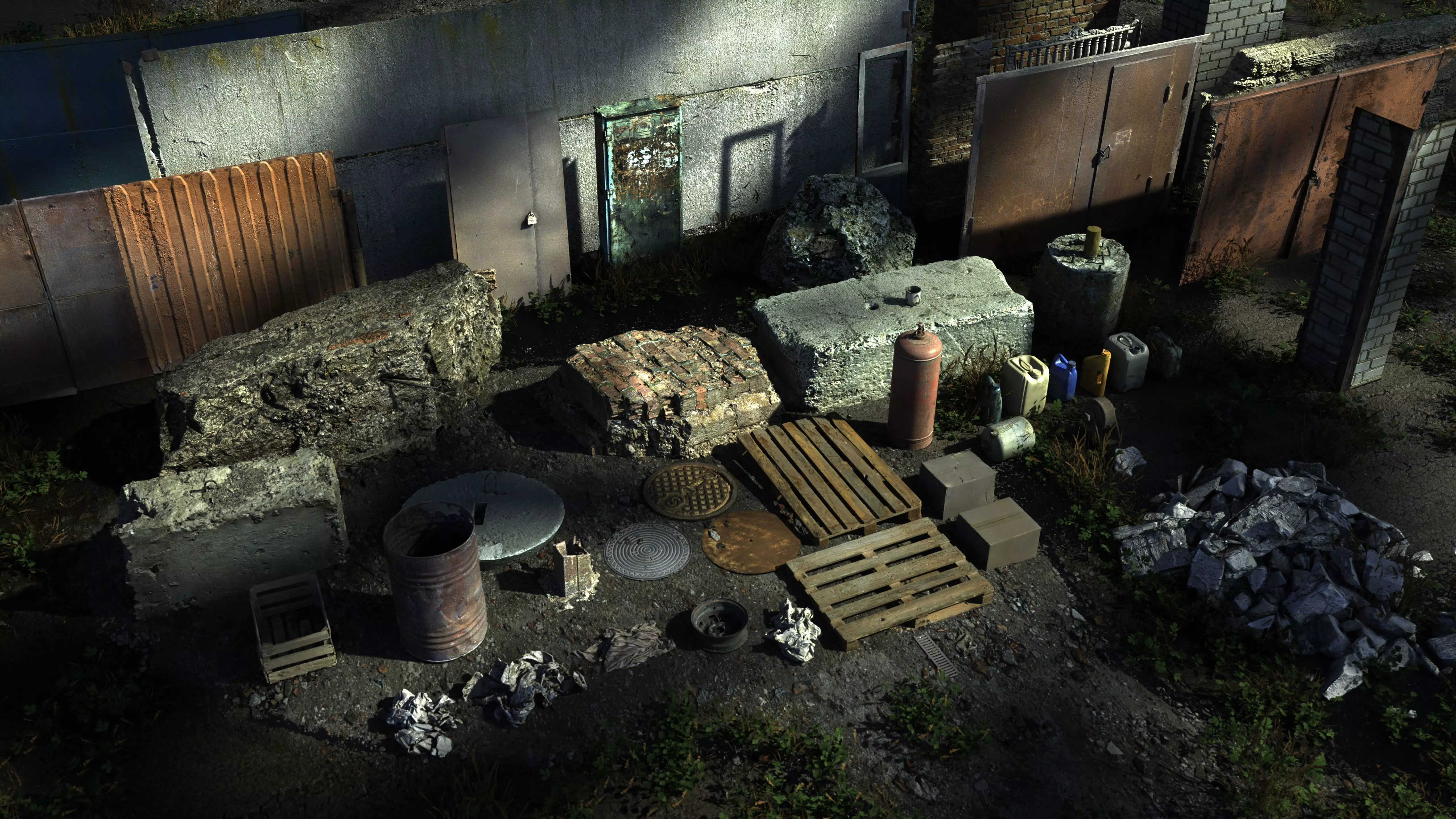 This pack contains 55 highly detailed , optimized ready-to-go assets of various concrete slabs, gates, props, canisters, gas tanks and other urban assets. Those are extremely useful for virtually any project! Every asset is equipped with full set of sharp 8K textures with hand UV`s and cinematic LODs starting with LOD03 8000 tris in average, which are