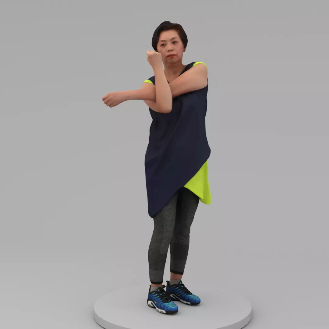 A middle-aged woman doing warm-up stretchingA middle-aged woman doing warm-up stretching wearing casual wear