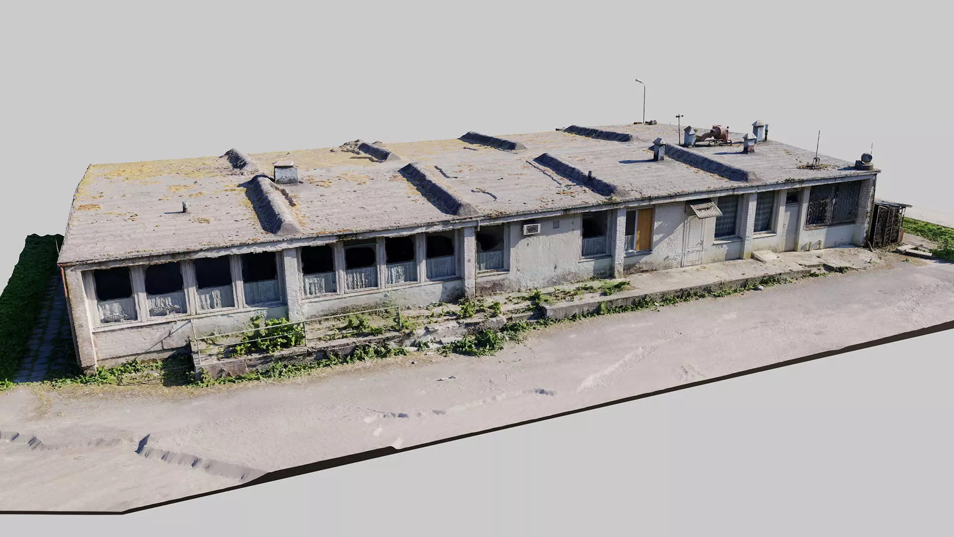 A photoscan of abandoned soviet base building. This asset has 2 LODS - low poly version is about 200K polys and HD version is about 2M polys, works well for closeups. The building is prepared as .blend, .obj or .fbx .
