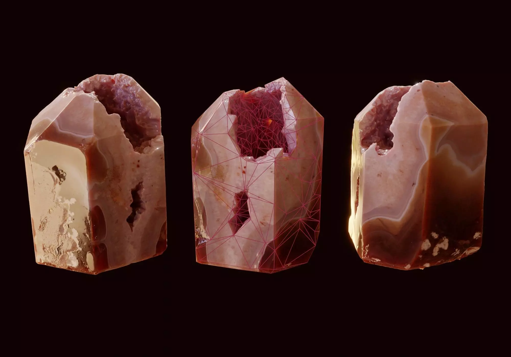 A photoscanned background prop. This is an agate geode that has been cut and polished.