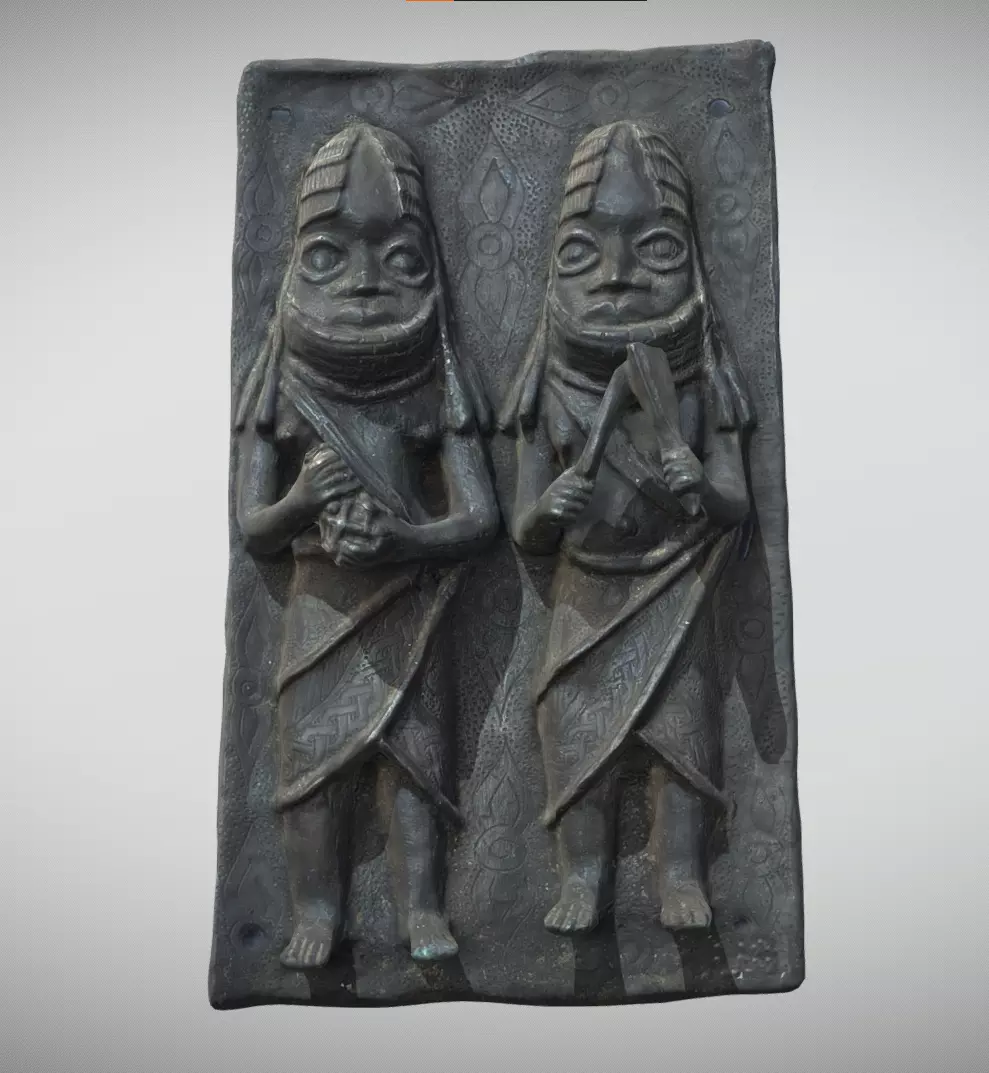 Omorogbe, Aigbe. Benin bronze relief plaque, Bronze-cast(lost-wax), Private collection, Benin city