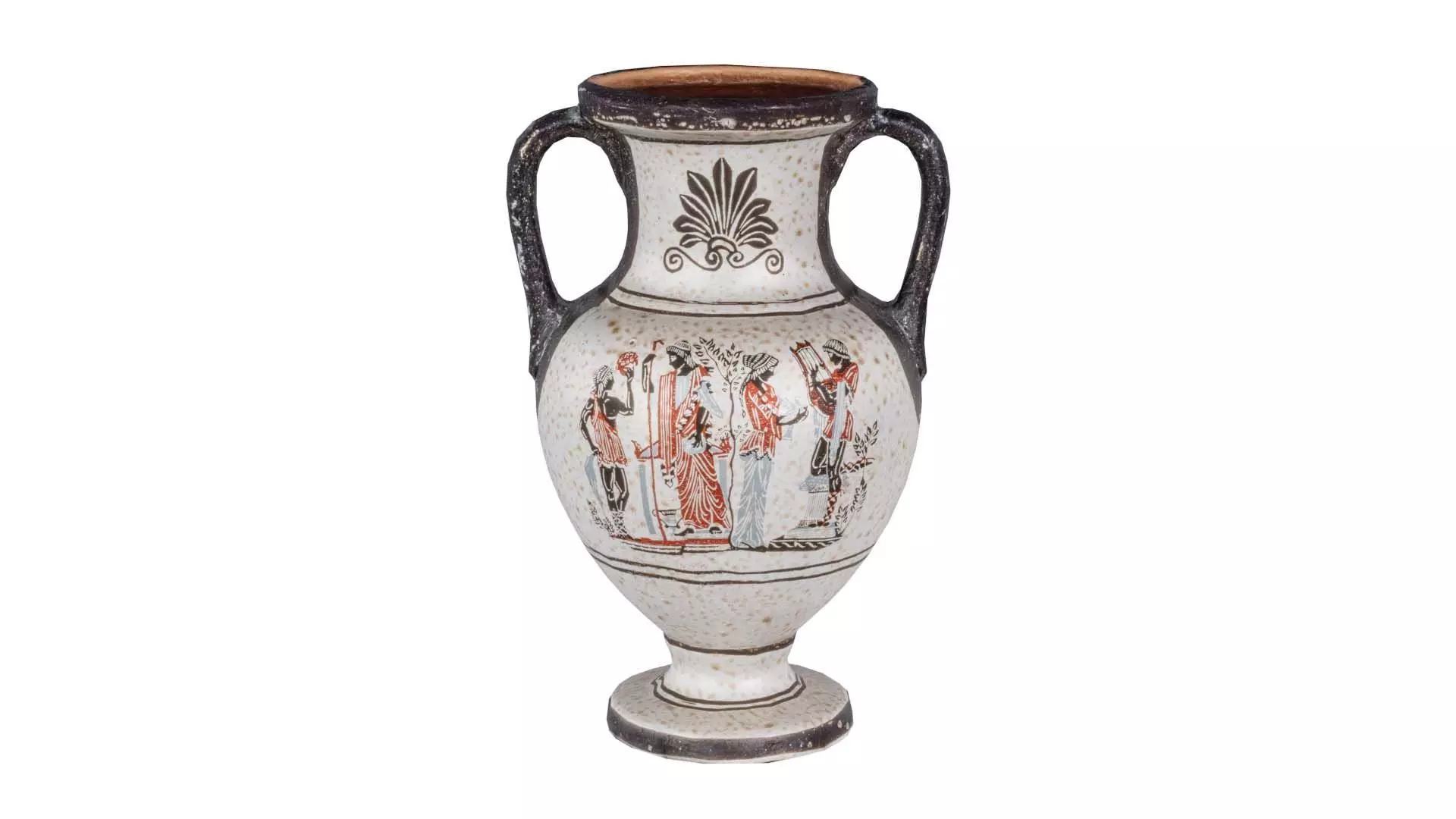 Polygonal Miniatures presents amfora, a model from our 3D scanned catalogue. The model, ancient greek vase with figures on the bottom, is obtained by photogrammetry, and scanned using SLR camera's.Processing takes place in Zbrush and Photoshop and the resulting 3D model has unwrapped, non overlapping UV's, and a texture and normal map. Before publishing, we make sure the model has real world scale (meters), correct shader setup and is centered at the origin.Apart from the various file formats, we also offer a Blender file with material and textures set-up, ready for export and rendering. More info can be found below: