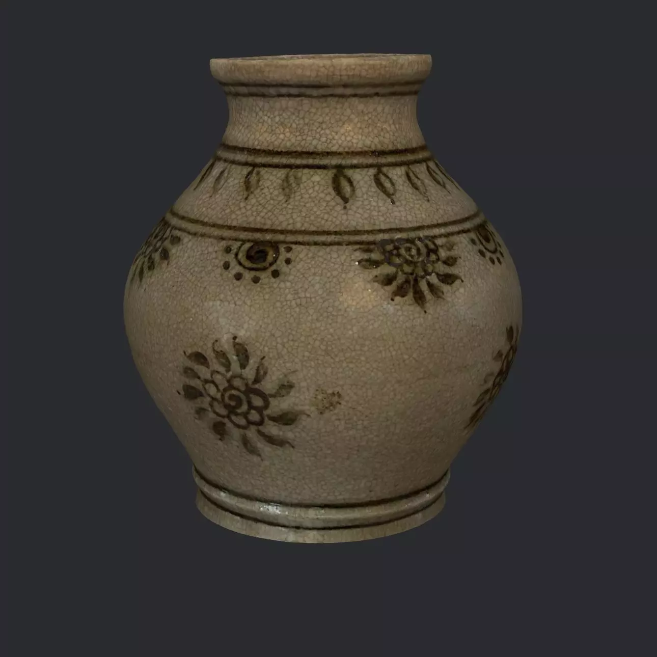 A sleek 3D vase, gracefully curved with textured details and intricate patterns. Its flared lip elegantly showcases the blooms it holds, blending timeless elegance with modern design. This design is perfect for adding decoration or filling empty space in an otherwise bland scene.