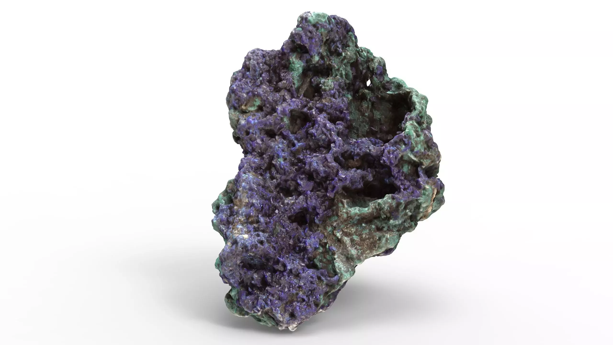 Azurmalachite gemstone is a photo scanned model. It is retopologized and fully ready for use in game engines. The model has material in PBR pipeline textures. This pack contains low poly version of model with textures, and high poly source mesh with UV and textures. Pack contains fully setuped blender scene.