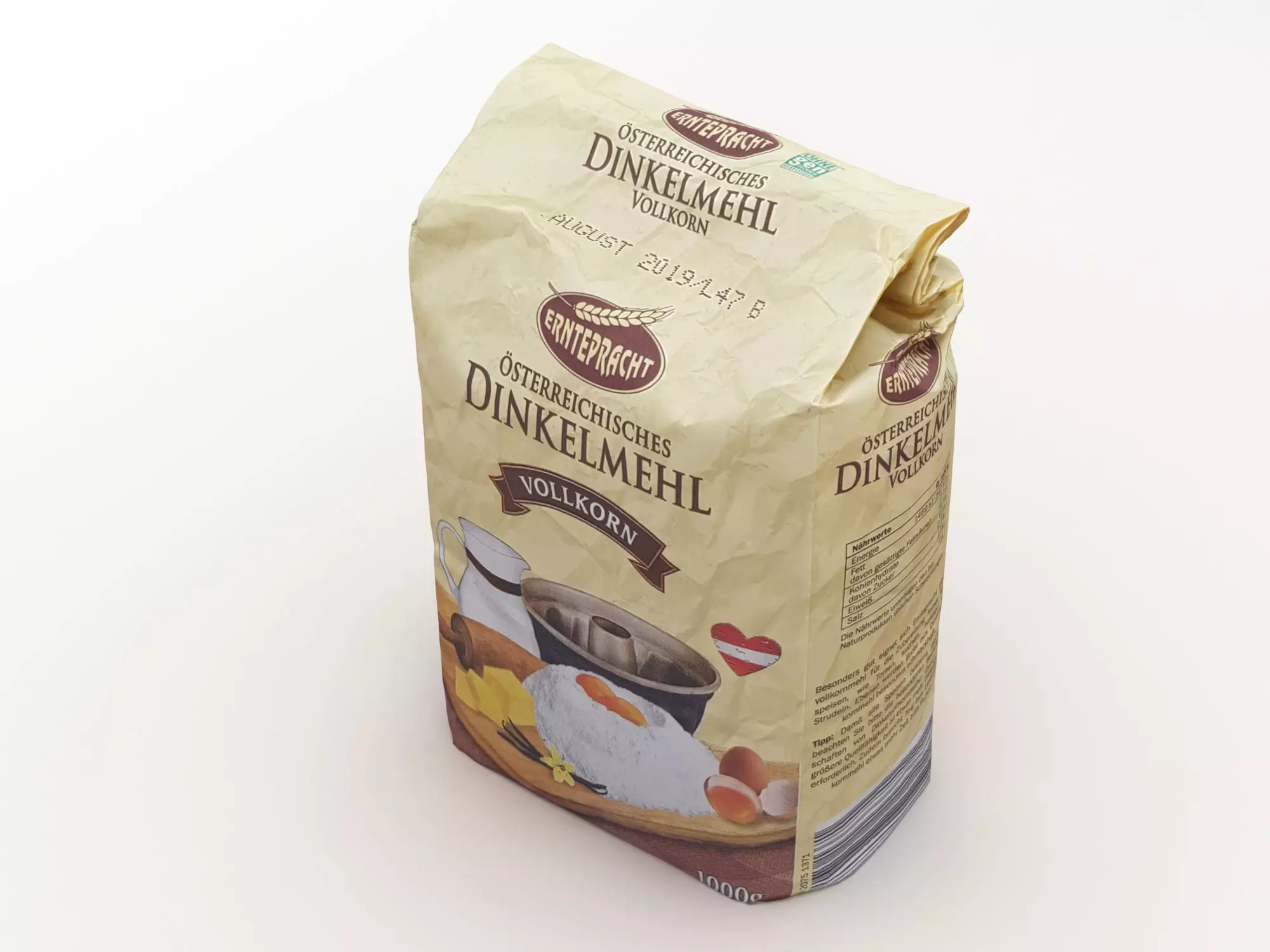 A DETAILED 3D MODEL OF A BAG OF FLOUR: