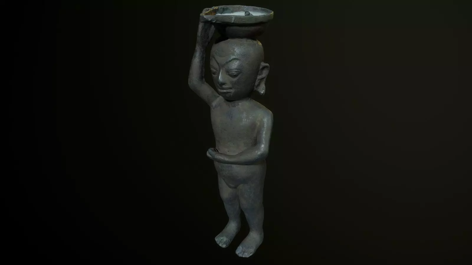 Bring ancient atmosphere and handcrafted charm into your 3D scenes with this stylized bronze statue of a small human figure carrying a traditional oil lamp. Sculpted with worn, time-weathered detail, this character features subtle facial expressions, realistic metal aging, and a functional lamp bowl—perfect as a prop for temples, shrines, historical environments, museums, fantasy settings, or cinematic lighting setups.