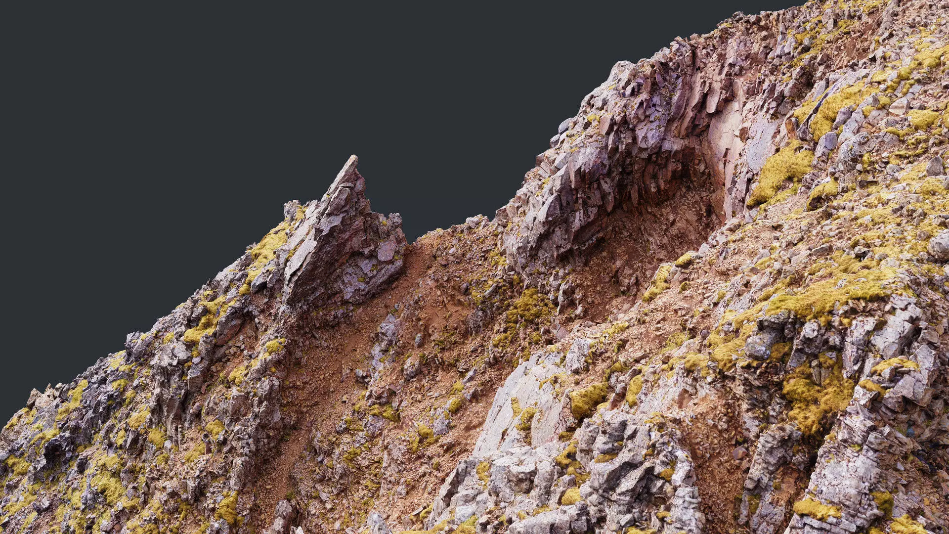 This detailed 3D scan of an cliff formation basalt, was captured in neutral lighting to ensure accurate surface detail and realistic color tones. The model has been carefully cleaned, decimated, and optimized for both real-time and offline rendering workflows