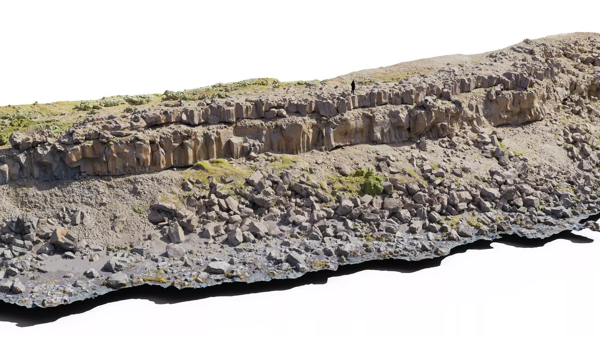 Basalt Cliff ScanThis detailed 3D scan of a large basalt cliff module was captured in neutral lighting conditions in Iceland, ensuring accurate surface detail and realistic color tones. The model has been carefully cleaned, decimated, and optimized for real-time and offline rendering workflows.