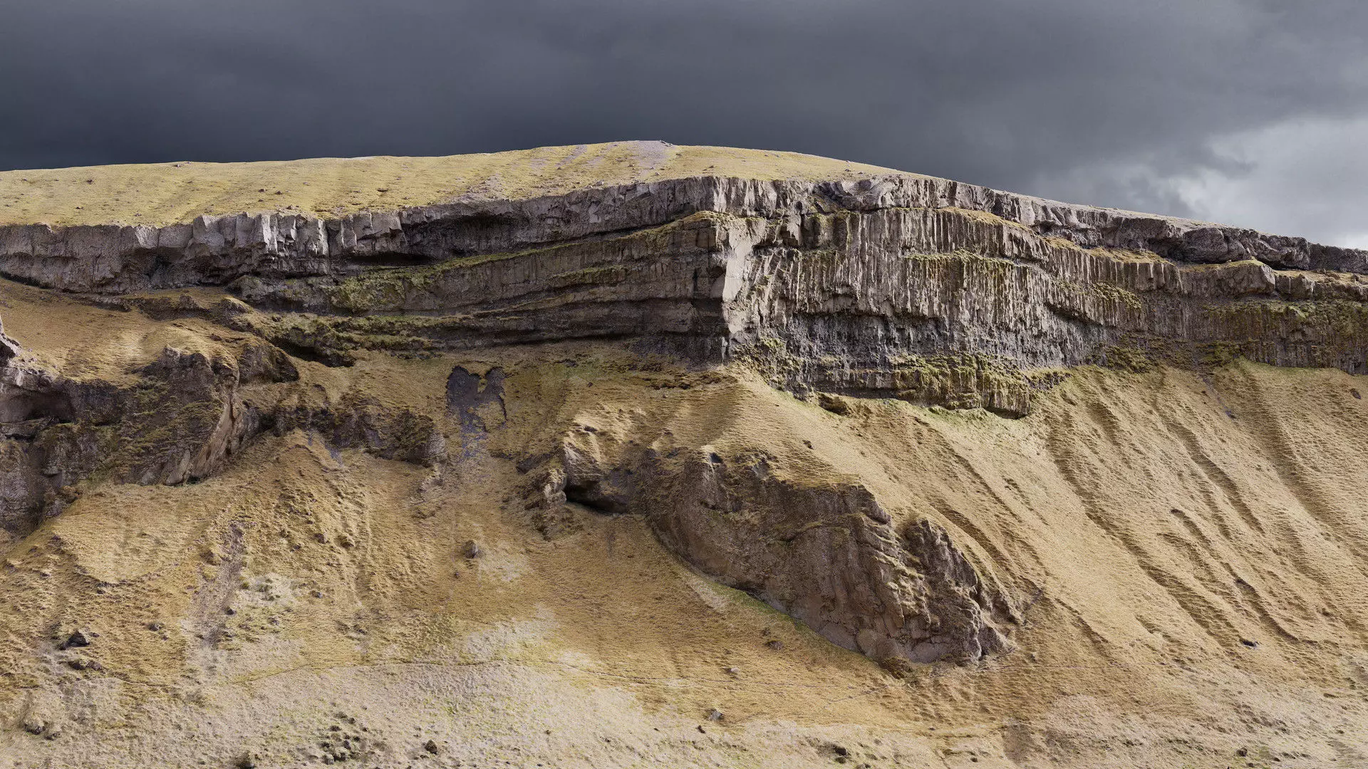 This detailed 3D scan of an massive basalt mountain side, was captured in neutral lighting to ensure accurate surface detail and realistic color tones. The model has been carefully cleaned, decimated, and optimized for both real-time and offline rendering workflows
