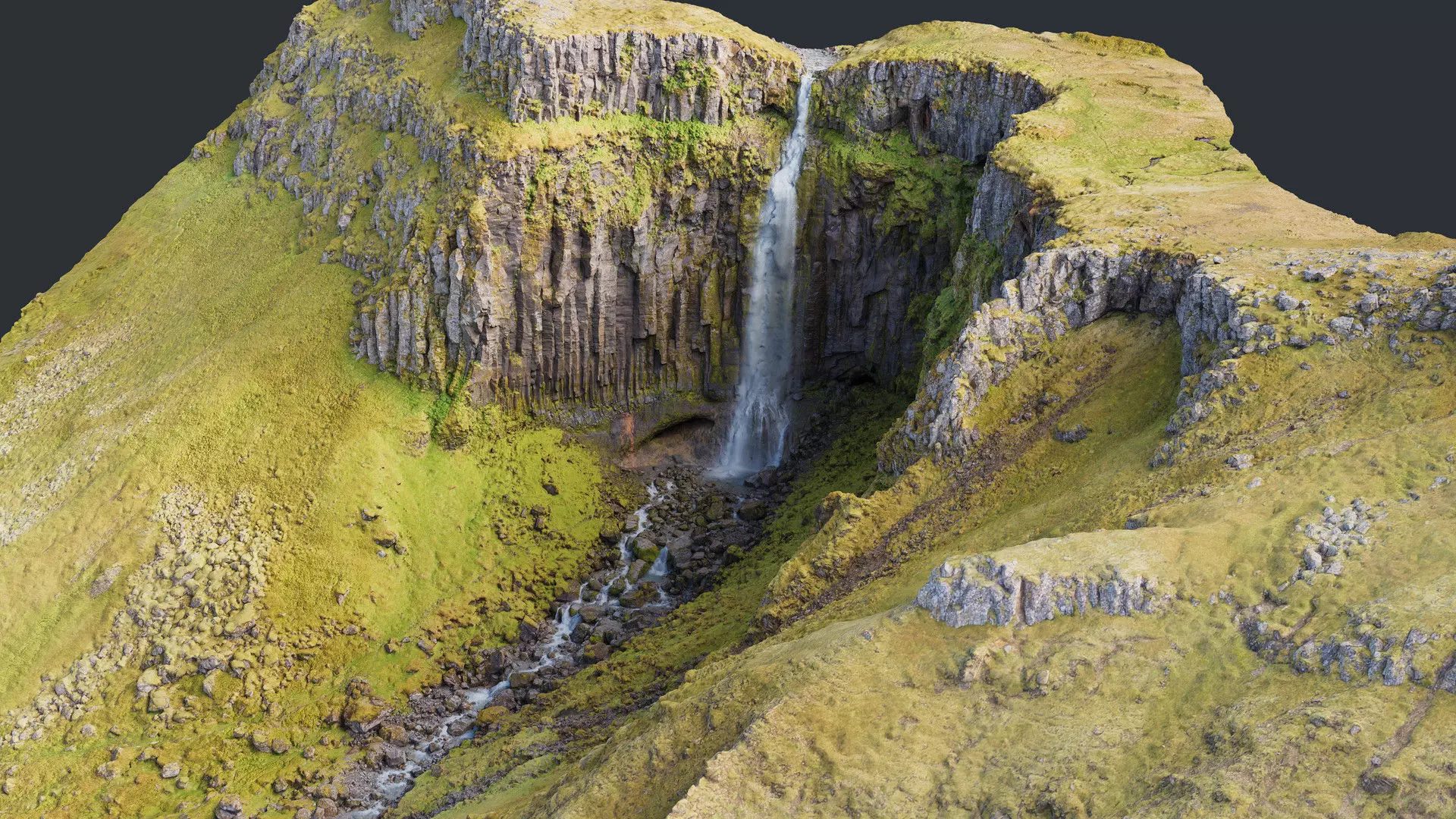 This detailed 3D scan of an Icelandic waterfall cliffs, was captured in neutral lighting to ensure accurate surface detail and realistic color tones. The model has been carefully cleaned, decimated, and optimized for both real-time and offline rendering workflows