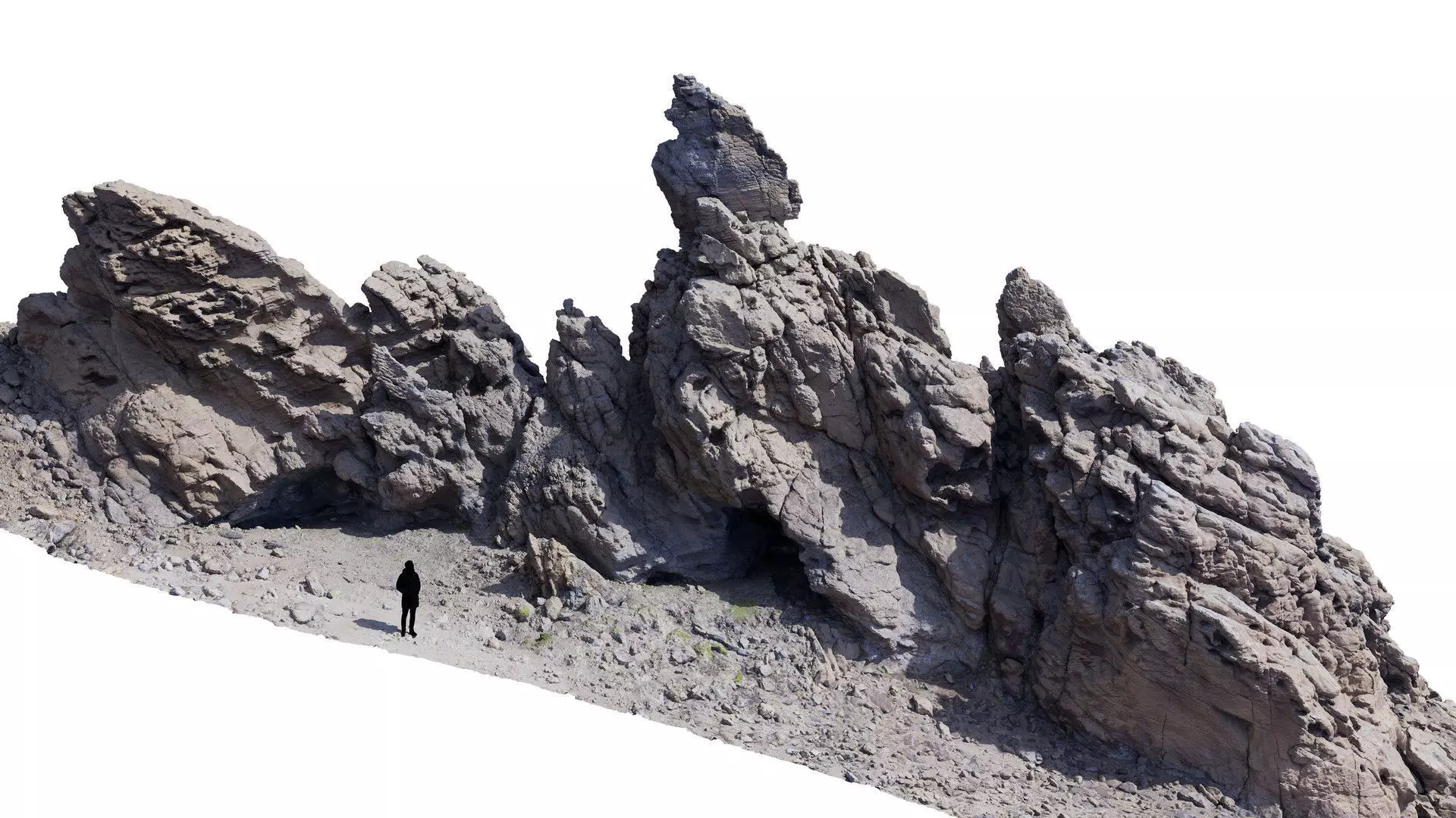 Spiky Rock Formation - PBR ScanThis detailed 3D scan of a peak rock/cliff formation was captured in neutral lighting conditions in Iceland, ensuring accurate surface detail and realistic color tones. The model has been carefully cleaned, decimated, and optimized for real-time and offline rendering workflows.