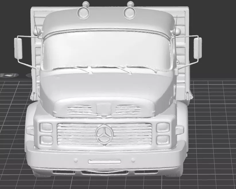 Modelo 3D detallado del camión clásico Mercedes-Benz 1518, diseñado con proporciones realistas y estructura optimizada para impresión 3D. La pieza reproduce fielmente la cabina cuadrada característica, parrilla frontal con estrella central, parachoques robusto y chasis reforzado tipo plataforma.